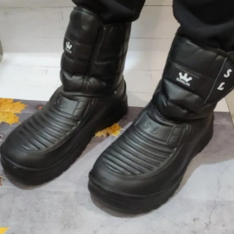 Практичні та теплі чоловічі чоботи-дутики від перевіреного бренду Sanlin — це надійний захист ваших ніг у зимову негоду. Модель ідеально підходить для сльоти, мокрого снігу та бруду завдяки комбінованій конструкції. Нижня частина (калоша) відлита з легкого та морозостійкого матеріалу ЕВА (пінка), який не пропускає вологу та чудово зберігає тепло. Верхня частина виготовлена з щільного водовідштовхувального текстилю. Збоку розташована зручна широка липучка, яка дозволяє швидко взуватися та регулювати ширину халяви під будь-який об'єм ноги або товщину штанів. Всередині чоботи утеплені густим штучним хутром, що забезпечує комфорт навіть при низьких температурах. Це взуття незамінне для повсякденного використання у приватному секторі, поїздок на дачу, прогулянок із собакою або роботи на вулиці. Стильний чорний дизайн з логотипом "Sanlin" виглядає охайно та сучасно. Характеристики: Тип взуття: Дутики / Сноубутси / Чоботи комбіновані Матеріал низу: Піна ЕВА (EVA) - цільнолита, водонепроникна Матеріал верху: Водовідштовхувальний текстиль (плащівка) Утеплювач: Штучне хутро Застібка: Липучка (Velcro) Сезон: Зима / Холодна осінь Колір: Чорний Бренд: Sanlin Розміри: 41-45