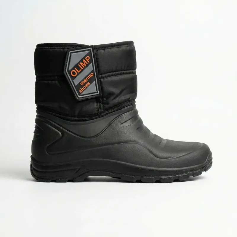 Зимові чоловічі черевики серії "Olimp Thermo Shoes" — це надійний захист ваших ніг від холоду та вологи. Модель поєднує в собі легкість галош із піни та комфорт утеплених дутиків. Завдяки широкому розмірному ряду (41-46), вони підійдуть як підліткам, так і дорослим чоловікам. Нижня частина чобота відлита з матеріалу ЕВА, який є повністю водонепроникним та морозостійким. Цей матеріал відмінно амортизує та не пропускає холод від землі. Верхня частина виготовлена з щільного текстилю, що захищає від вітру. Всередині взуття утеплене штучним хутром, що дозволяє зберігати тепло навіть при низьких температурах. Зручна широка застібка на липучці з логотипом "OLIMP" дозволяє швидко взуватися та регулювати щільність прилягання халяви. Це особливо зручно для людей з високим підйомом ноги. Рельєфна підошва забезпечує стійкість на снігу та слизькій дорозі. Характеристики: Виробник: Olimp Матеріал низу: Піна ЕВА (цільнолита) Матеріал верху: Водовідштовхувальний текстиль Утеплювач: Штучне хутро Застібка: Липучка з логотипом Розміри: 41-46 Колір: Чорний Сезон: Зима / Пізня осінь
