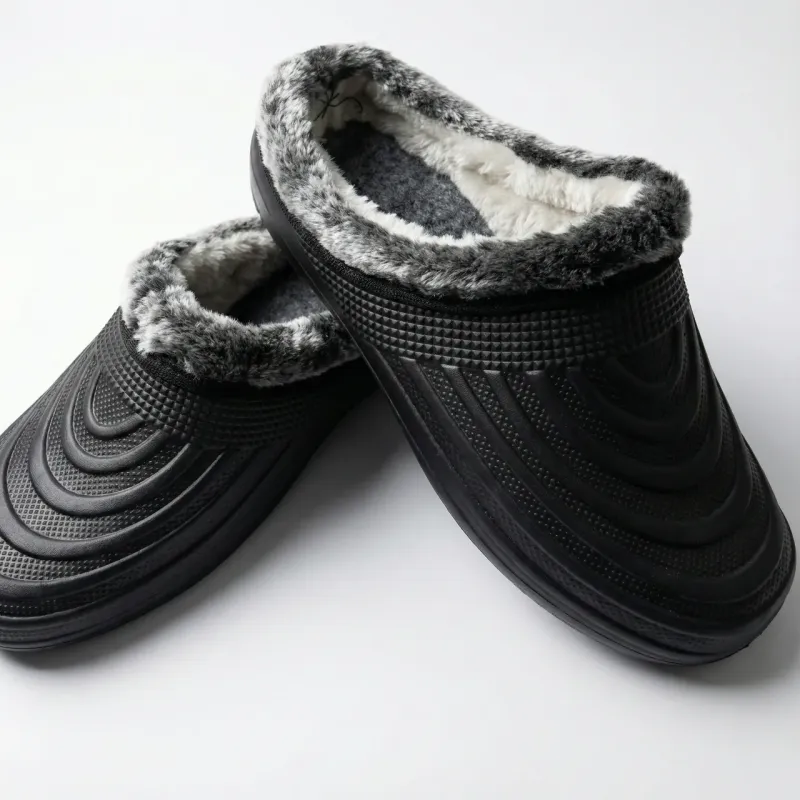 Практичні та зносостійкі чоловічі калоші (сабо) універсального чорного кольору. Ця модель вирізняється оригінальним рельєфним дизайном у вигляді хвиль, що додає взуттю жорсткості та формостійкості. Виготовлені з сучасного матеріалу ЕВА (піна), вони надзвичайно легкі та забезпечують 100% захист від вологи та бруду. Внутрішня частина оздоблена теплим наповнювачем (утеплювачем), який створює комфортний мікроклімат для ніг навіть у прохолодну погоду. Це ідеальний вибір для господарських потреб: роботи на городі, прибирання снігу, прогулянок у дворі приватного будинку або використання як змінного взуття в холодних приміщеннях. Калоші мають зручну колодку, легко взуваються без допомоги рук та невибагливі у догляді — достатньо просто протерти їх вологою ганчіркою. Характеристики: Матеріал: Піна ЕВА (EVA) — легкий, теплий, водонепроникний. Утеплювач: Текстиль / Штучне хутро (незнімне). Колір: Чорний. Дизайн: Рельєфна поверхня. Сезон: Осінь / Зима / Весна. Розмірний ряд: 41-45 (повномірні). Країна виробник: Україна.