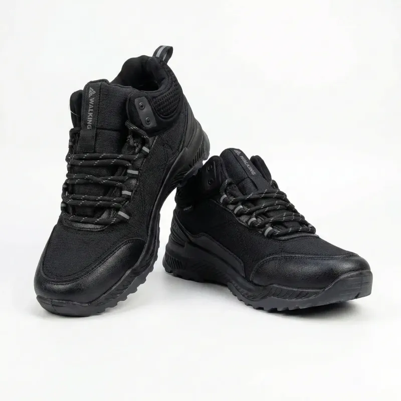 Зустрічайте зиму впевнено з чоловічими термо-кросівками серії Walking! Це універсальна модель, яка поєднує зручність спортивного взуття та надійність трекінгових черевиків. Ідеально підходять для щоденного носіння містом, роботи на вулиці або прогулянок по пересіченій місцевості. Верх виготовлено з міцного зносостійкого текстилю (типу Cordura) з посиленими накладками з еко-шкіри, що захищають стопу від ударів та вологи. Всередині кросівки повністю утеплені густим штучним хутром, яке збереже ваші ноги в теплі навіть у мороз. Особлива гордість моделі — підошва з глибоким агресивним протектором. Вона забезпечує відмінне зчеплення зі снігом, брудом та слизькими поверхнями, запобігаючи ковзанню. Зручна шнурівка надійно фіксує гомілковостоп, а м'який язичок запобігає натиранню. Характеристики: Сезон: Зима Колір: Чорний Матеріал верху: Текстиль + Еко-шкіра (комбінований) Матеріал підкладки: Штучне хутро Підошва: ПВХ/Гума (з глибоким протектором) Стиль: Спортивний / Трекінговий Розміри: 41, 42, 43, 44, 45