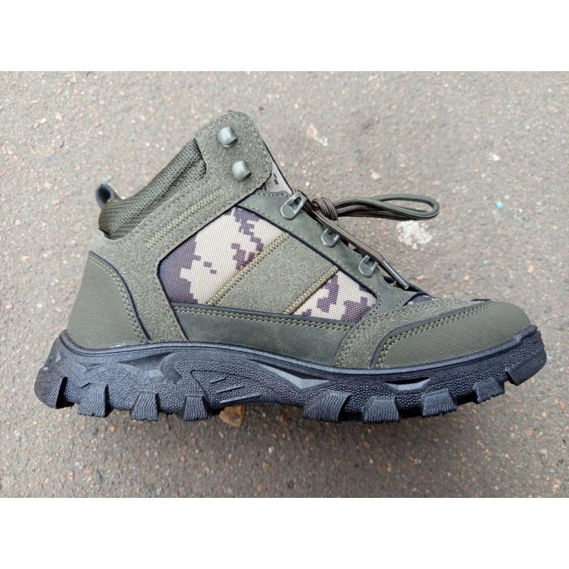 Зустрічайте зиму в патріотичному стилі з надійними чоловічими кросівками серії "UA Tactical"! Ця модель розроблена спеціально для тих, хто шукає міцне, тепле та недороге взуття для складних умов. Ідеально підходять для пересіченої місцевості, активного відпочинку, полювання або як змінне взуття для військовослужбовців. Чому варто обрати цю модель: Дизайн: Стильне поєднання кольору хакі (олива) та вставок камуфляжу "Піксель". На бічній стороні розміщено вишитий логотип "UA", що підкреслює українське виробництво або стилістику. Тепло: Всередині кросівки повністю утеплені густим штучним хутром, яке надійно зберігає тепло навіть при мінусових температурах. Матеріали: Верх виготовлено з якісного штучного нубука у поєднанні зі зносостійким текстилем. Це забезпечує захист від вітру та вологи. Підошва: Потужна протекторна підошва ("тракторна") гарантує відмінне зчеплення зі снігом та брудом, не ковзає і довго не стирається. Шнурівка з металевими петлями дозволяє надійно зафіксувати взуття на нозі, а м'який язичок запобігає натиранню. Характеристики: Стиль: Мілітарі / Тактичний Колір: Хакі (Олива) + Піксель Матеріал верху: Еко-нубук + Текстиль Утеплювач: Штучне хутро Підошва: ПВХ (посилений протектор) Застібка: Шнурівка Розміри: 41, 42, 43, 44, 45