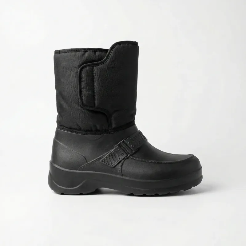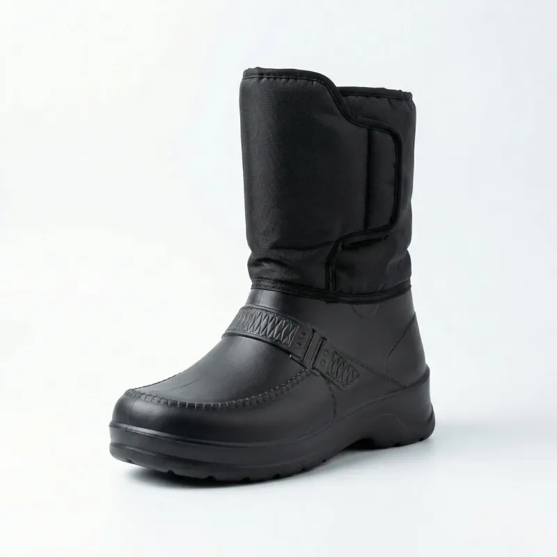 Піна ЕВА — це революційний матеріал у виробництві зимового взуття, який поєднує легкість, міцність та чудові теплоізоляційні властивості. На відміну від традиційного шкіряного або гумового взуття, дутики з ЕВА важать у кілька разів менше, при цьому зберігаючи тепло навіть при температурі до -30°C. Додаткове утеплення всередині чобіт створює комфортний мікроклімат для ваших ніг, запобігаючи переохолодженню навіть під час тривалого перебування на морозі. Чорний колір робить ці чоботи універсальними — вони ідеально поєднуються з будь-яким зимовим одягом, від спортивних курток до класичних пальто.