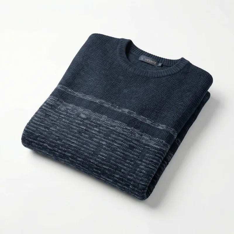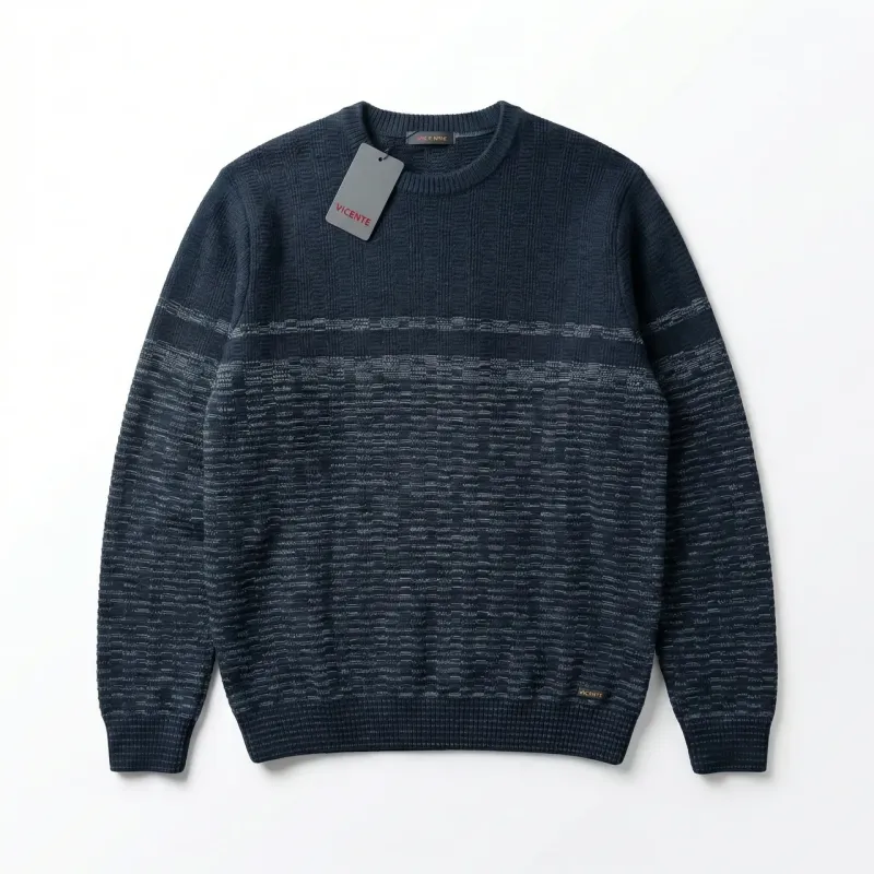 Стильний чоловічий джемпер від відомого турецького бренду Vicente — це поєднання елегантності та високої якості. Модель розроблена спеціально для чоловіків, які носять великі розміри (56, 58), забезпечуючи ідеальну посадку по фігурі без обтягування. Виріб виконаний у благородному темно-синьому кольорі з цікавою фактурною в'язкою (горизонтальні смуги), що надає образу сучасності та статусності. Класичний круглий виріз дозволяє носити джемпер як самостійно, так і поверх сорочки. М'який та приємний на дотик матеріал добре зберігає тепло, не "кусається" і зберігає форму навіть після численних прань. Це універсальна річ, яка гармонійно впишеться як у діловий гардероб, так і в повсякденний стиль (кежуал) під джинси. Турецька якість гарантує довговічність та комфорт у носінні. Характеристики: Виробник: Vicente (Туреччина) Розміри: 56, 58 (Батал) Колір: Темно-синій (джинс) з візерунком Тип горловини: Круглий виріз (під горло) Сезон: Осінь / Зима / Весна Стиль: Повсякденний (Casual)