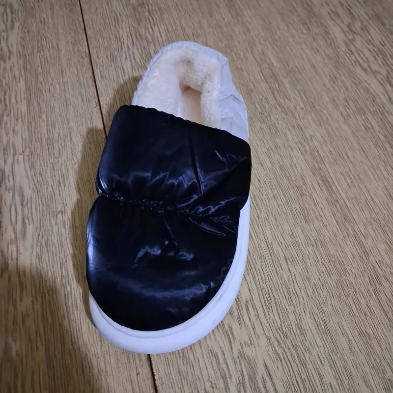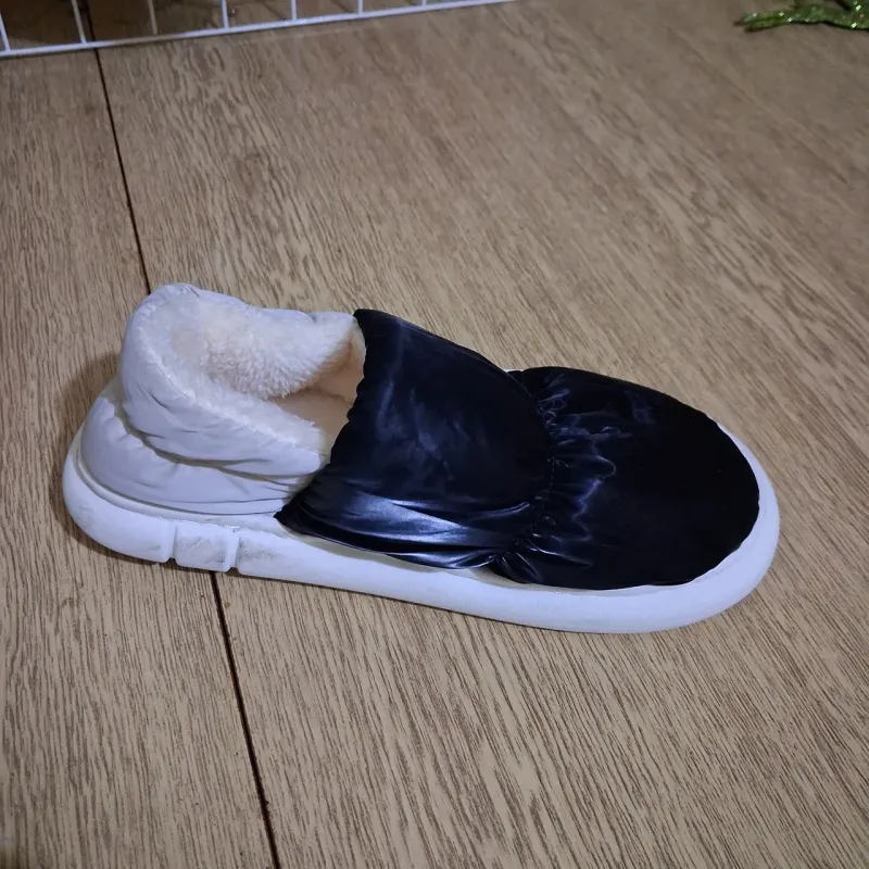 Забезпечте своїм ногам максимальний захист від холоду з нашими утепленими домашніми чунями. Ця модель — ідеальне рішення для зими та міжсезоння, поєднуючи в собі зручність м'яких тапочок і тепло повноцінних чобітків. Верх виконаний з міцної плащової тканини (болонья), яка не продувається і легко чиститься, а стильний чорний колір робить їх практичними та універсальними. Всередині бурки утеплені густим світлим штучним хутром, яке чудово утримує тепло і створює ефект "сухого тепла". М'яка конструкція дозволяє взуттю ідеально сісти по нозі, не стискаючи її, що особливо важливо для людей, які цінують комфорт після робочого дня. Чуні підходять як для чоловіків, так і для жінок завдяки широкій розмірній сітці. Підошва виготовлена з еластичного матеріалу, який не дубіє на холоді та забезпечує надійну ізоляцію від холодної підлоги (плитки, ламінату). Це взуття стане чудовим подарунком для батьків, дідусів та бабусь, або просто незамінним аксесуаром для затишних вечорів удома чи на дачі. Характеристики: Матеріал верху: Текстиль (плащівка/болонья) Матеріал підкладки: Штучне хутро (густе, тепле) Матеріал підошви: ПВХ/Піна (легка, ізолююча) Тип: Закриті (чобітки/чуні) Колір: Чорний (з білим хутром всередині) Розміри: 36-45 (повномірні) Сезон: Зима/Осінь Країна виробник: Фабричний Китай
