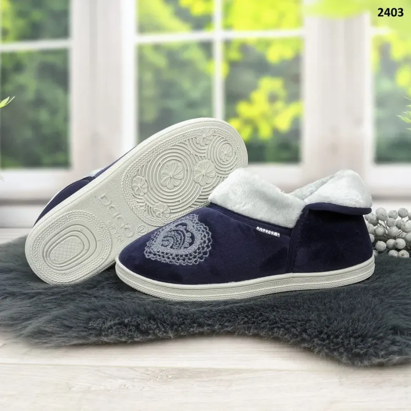 Чуні капці домашні сині з вишивкою Серце. Теплі жіночі бурки на хутрі Dagohome. Розміри 37-41 40