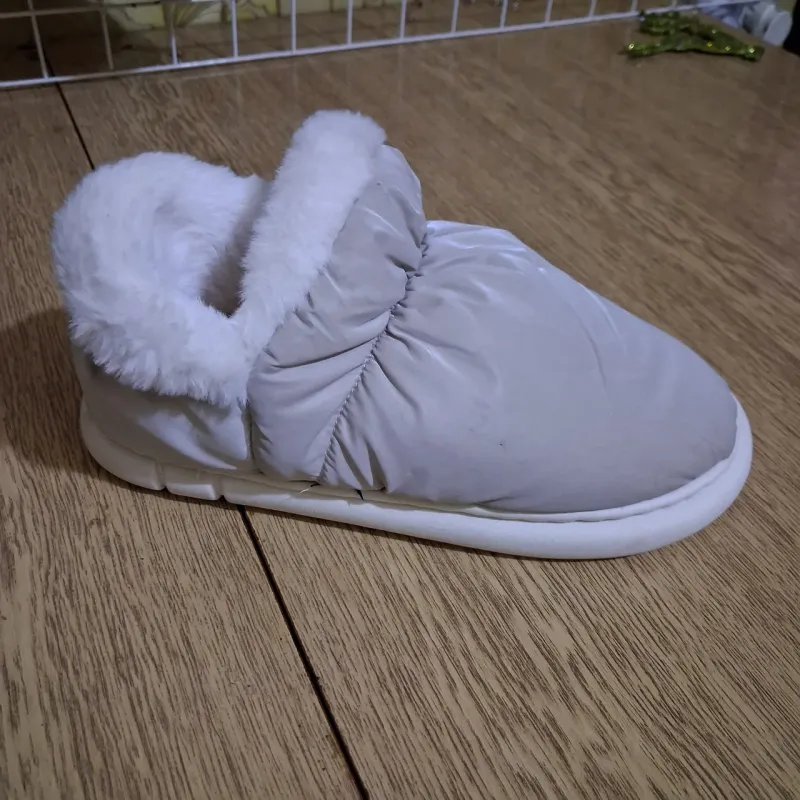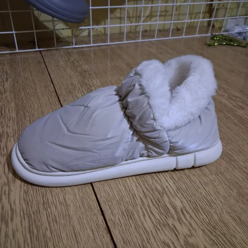 Пориньте у світ ніжності та комфорту з нашими утепленими домашніми чунями-дутиками. Ця модель у вишуканому світло-сірому кольорі нагадує м'які хмаринки або зефір. Верх виготовлений з якісної плащової тканини, яка не тільки стильно виглядає, але й дуже практична: вона не пропускає протяги та легко протирається від забруднень вологою серветкою. Усередині чобітки повністю утеплені густим, пухнастим штучним хутром білого кольору. Воно ніжно огортає стопу, швидко зігріває та утримує тепло, даруючи відчуття абсолютного затишку навіть у найхолодніші дні. Завдяки еластичній конструкції та широкому входу, чуні легко взуваються без зайвих зусиль. Підошва виконана з гнучкого, легкого матеріалу, який забезпечує відмінну амортизацію та ізоляцію від холодної підлоги. Ці "дутики" стануть ідеальним доповненням до вашого домашнього образу або чудовим подарунком для близької людини, про яку ви хочете подбати. Характеристики: Матеріал верху: Текстиль (плащівка/болонья) Матеріал підкладки: Густе штучне хутро (плюш) Матеріал підошви: ПВХ (гнучка, зносостійка) Тип: Закриті (чобітки/уггі) Колір: Світло-сірий (перлинний) Розміри: 36-41 Сезон: Зима/Осінь Країна виробник: Фабричний Китай