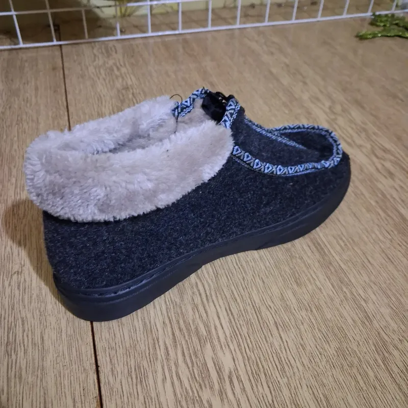 Зустрічайте ідеальне поєднання тепла та практичності — жіночі зимові чуні на блискавці. Ця модель створена для тих, хто цінує максимальний комфорт у холодну пору року. Верх виготовлений із щільного повстяного текстилю темно-сірого кольору, який чудово зберігає тепло та захищає від протягів. Оригінальності дизайну додає стильна декоративна тасьма з орнаментом. Головна перевага цієї моделі — зручна застібка-блискавка спереду. Вона дозволяє легко та швидко взуватися навіть людям з високим підйомом ноги або тим, кому важко нахилятися. Всередині бурки утеплені густим та м'яким еко-хутром світлого кольору, що забезпечує ногам "сухе тепло" та затишок навіть у найлютіші морози. Підошва лита, виготовлена з міцного ПВХ, що дозволяє носити ці чуні не тільки в квартирі, але й у приватному будинку, виходити на ганок чи у двір. Вони легкі, м'які та не обтяжують ноги, стаючи найкращим подарунком для мами чи бабусі. Характеристики: Матеріал верху: Повстяний текстиль (сукно) Матеріал підкладки: Густе штучне хутро Матеріал підошви: ПВХ (зносостійка, не промерзає) Застібка: Блискавка спереду Колір: Темно-сірий (графіт) Розміри: 36-41 Сезон: Зима/Холодна осінь Країна виробник: Фабричний Китай