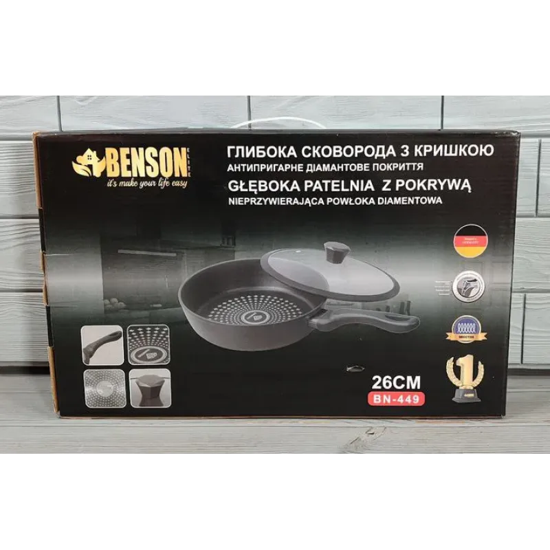Cковорода глибока Benson з алмазним антипригарним покриттям 26см 3,1л (BN-449)