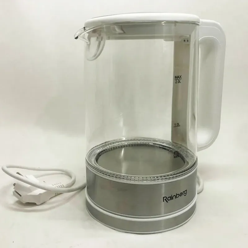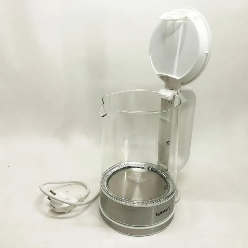 Дисковый электрический чайник Rainberg RB-709 стеклянный с подсветкой, чайник електро White