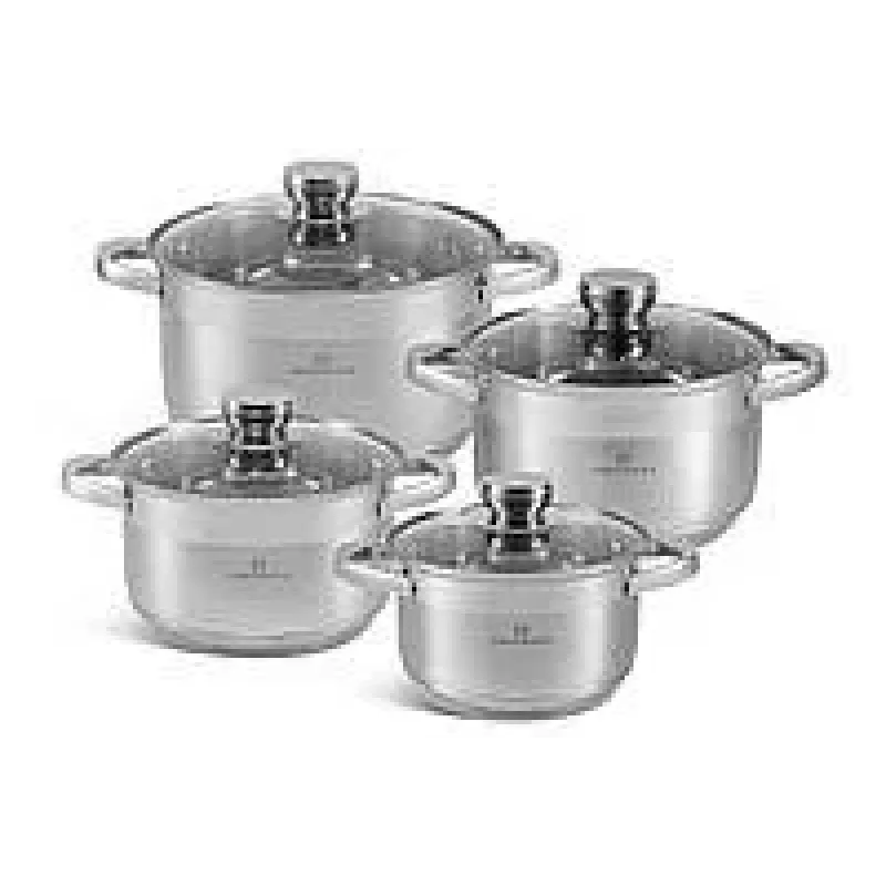 Набір посуду Edenberg із 8 предметів (EB-4032) виготовлений із високоякісної нержавіючої сталі 18/10. Дно 7-ми шарове, термоакумулююче не деформується, забезпечує рівномірну теплопровідність, швидкий розподіл і тривале утримання тепла, завдяки чому значно знижується ризик пригорання їжі.