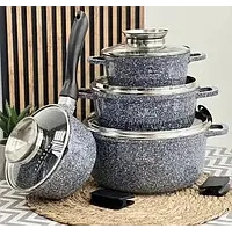 Набір виготовлений з високоякісного литого алюмінію, який забезпечує ідеальний розподіл тепла по всій поверхні. Багатошарове антипригарне покриття дозволяє готувати без пригорання, а ергономічні ручки залишаються холодними під час приготування. У комплекті казани різних розмірів для будь-яких кулінарних потреб.