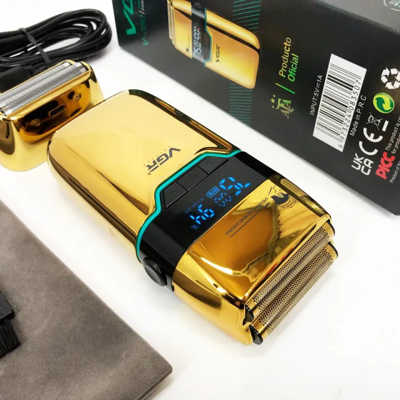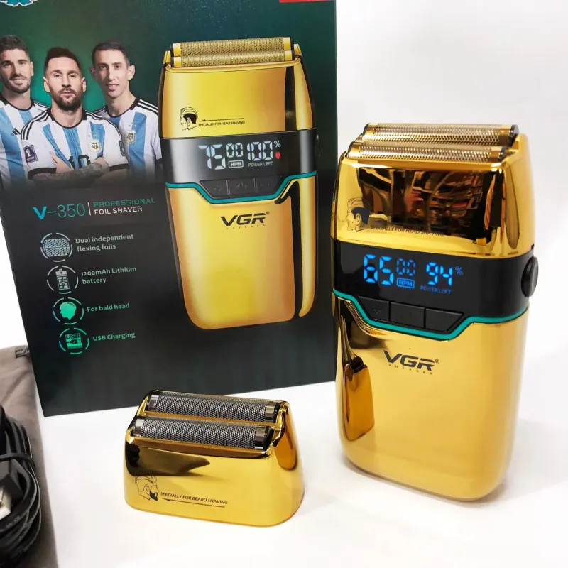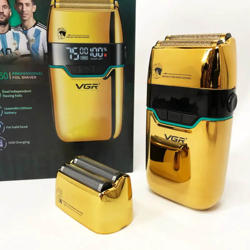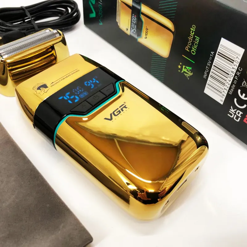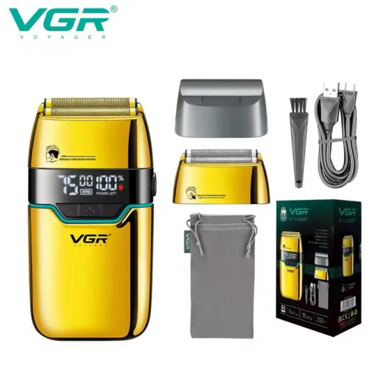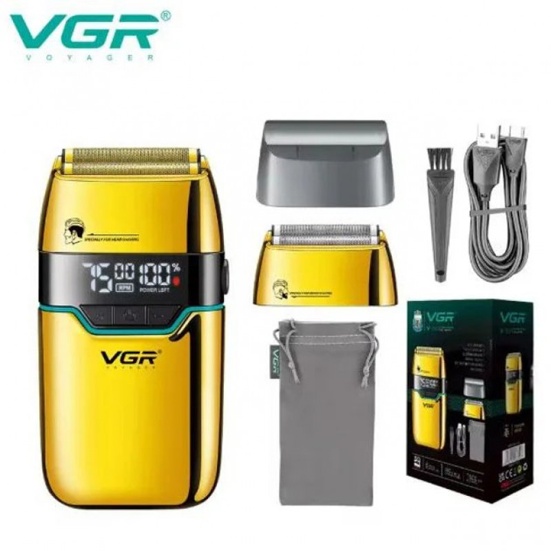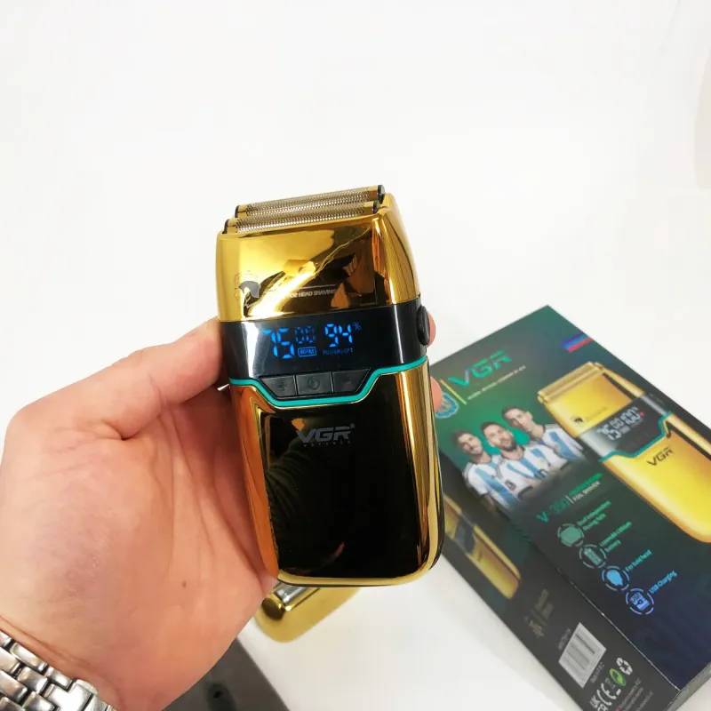 Электробритва шейвер VGR V-350 мужская аккумуляторная бритва для бритья с дисплеем. Цвет: золотой