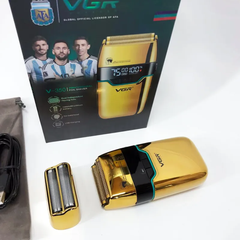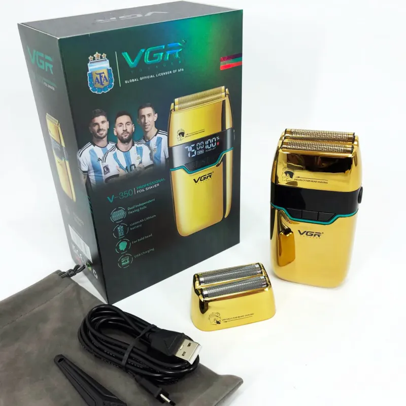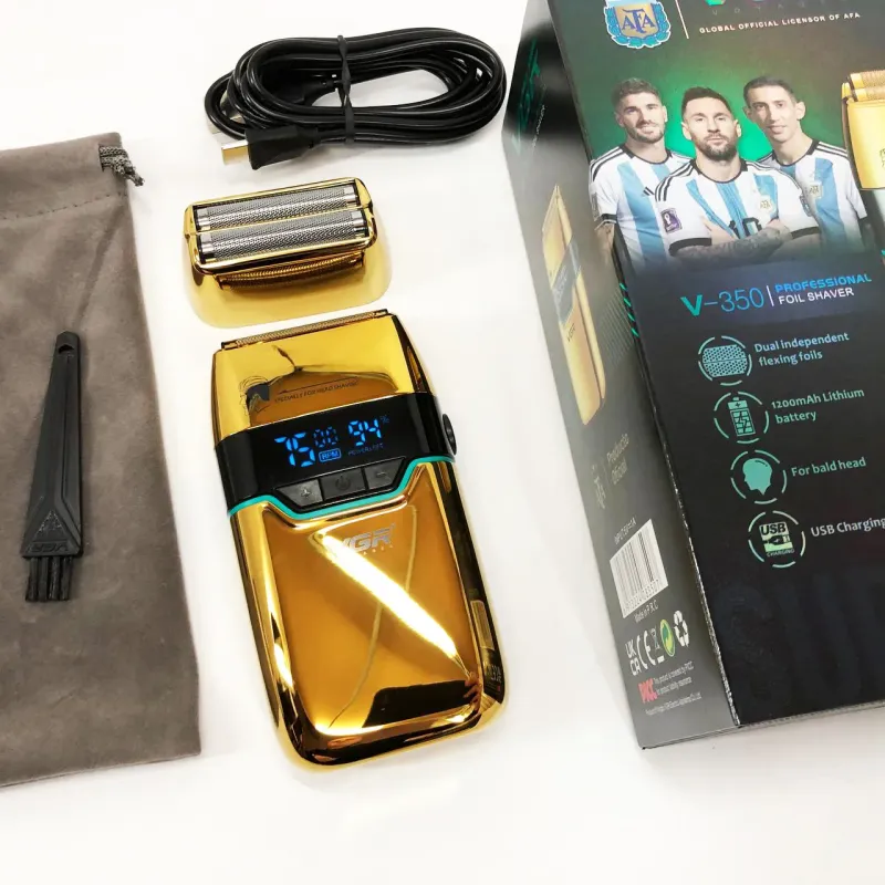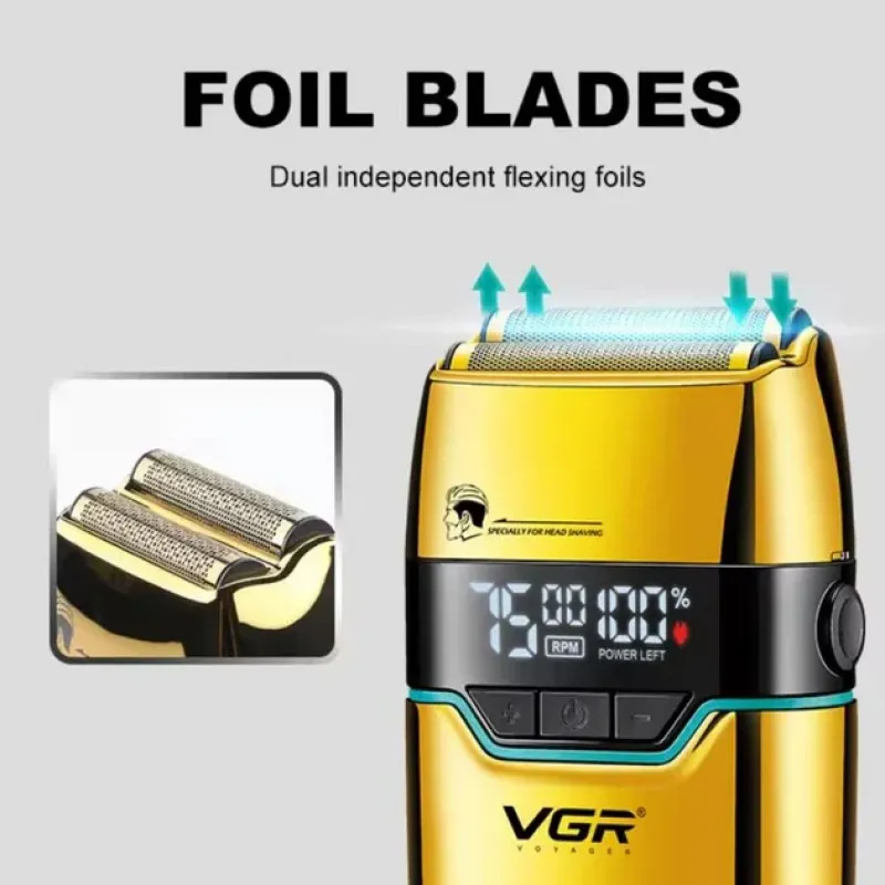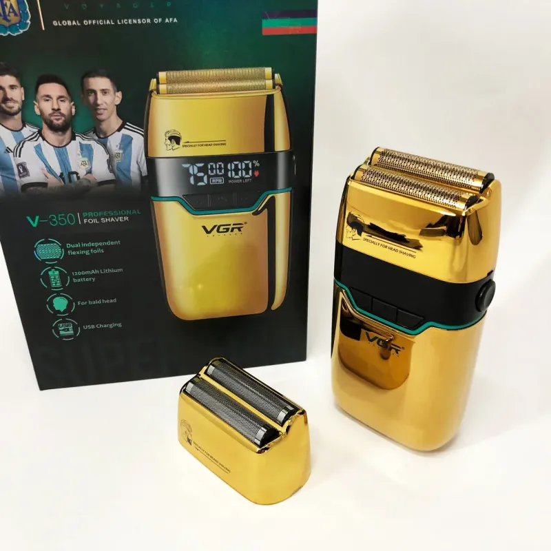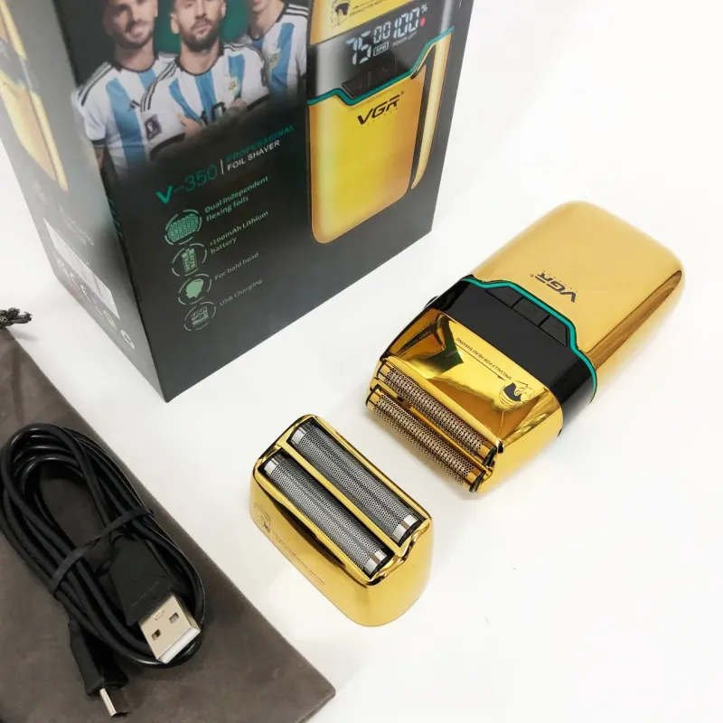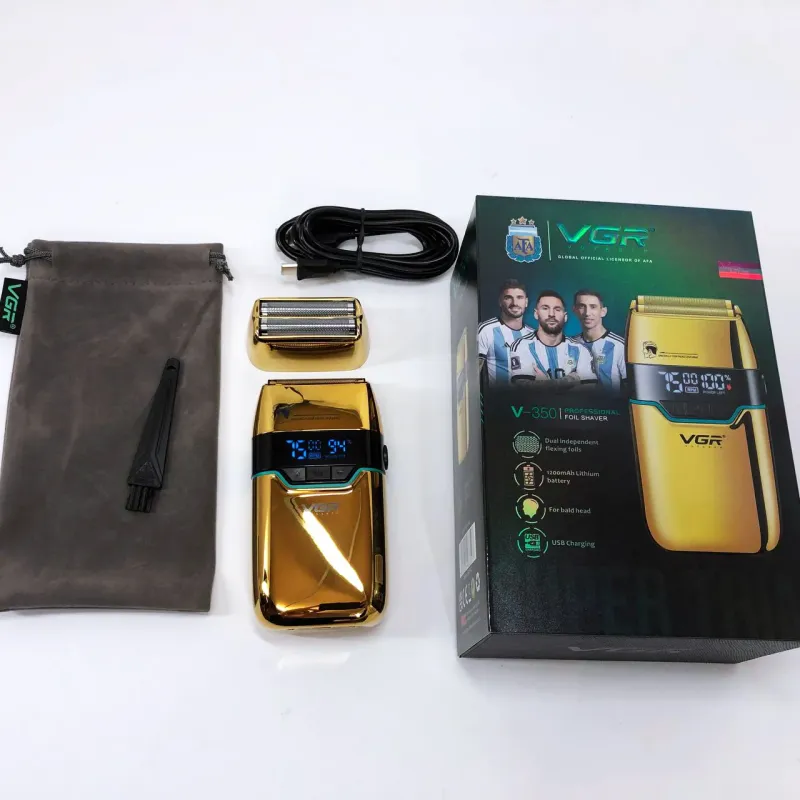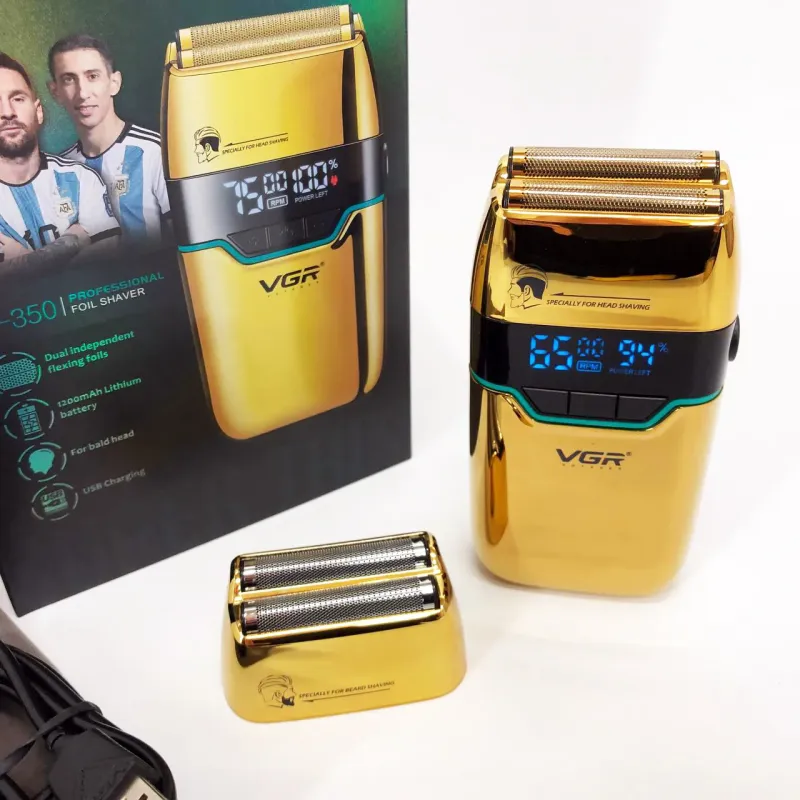 Электробритва шейвер VGR V-350 мужская аккумуляторная бритва для бритья с дисплеем. Цвет: золотой