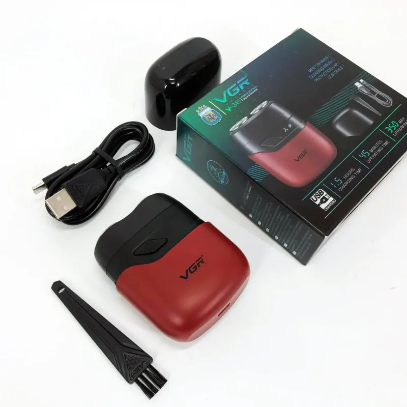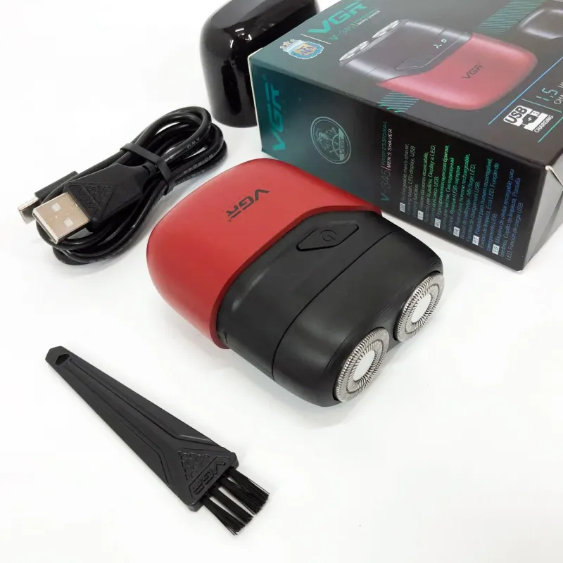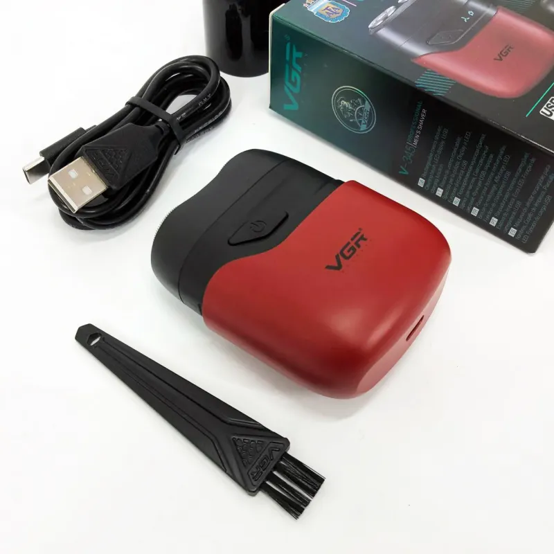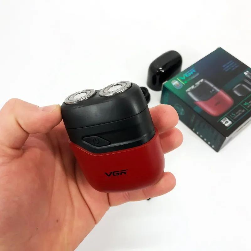 Бритва VGR обладает водонепроницаемостью по стандарту IPX7, что позволяет использовать ее во влажных условиях или быстро чистить под водой. Имеет индикатор зарядки через USB и встроенный светодиодный дисплей для легкой зарядки и мониторинга состояния.