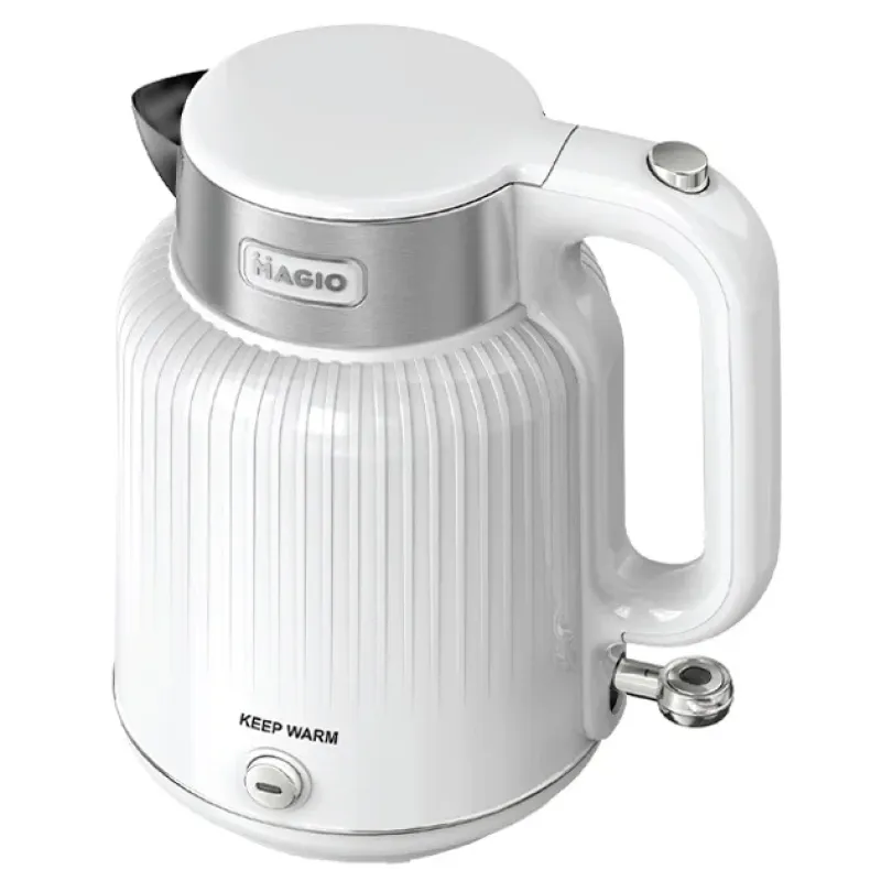 Электрочайник Magio MG-508 это отличный электрический чайник с корпусом из высококачественного белого пластика. С мощностью 2000 Вт он быстро вскипятит воду, притом что вмещает эту модель целых 1,7 литров, чего вполне достаточно для семьи. Индикатор уровня воды позволяет контролировать количество воды в чайнике. Для удобства он поворачивается на подставке на 360 градусов. Техническими преимуществами электрочайника Magio является наличие фильтра от накипи, визуальный индикатор уровня жидкости в приборе и опция автоматического отключения после закипания. Чайник легко очищается с помощью влажной губки или салфетки.