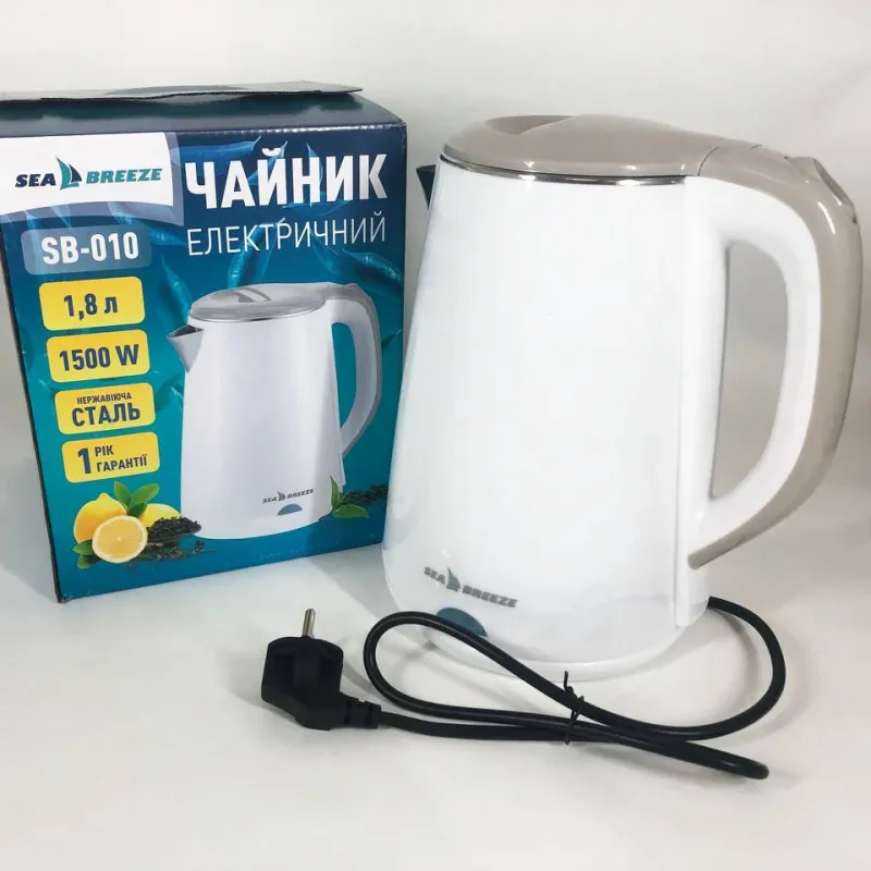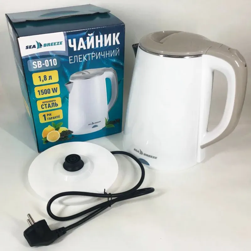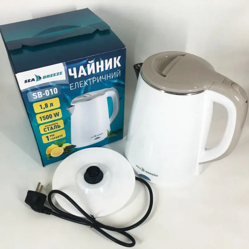 Электрочайник SeaBreeze SB-010 / 1,8 Л / чайник дисковый, электронный чайник
