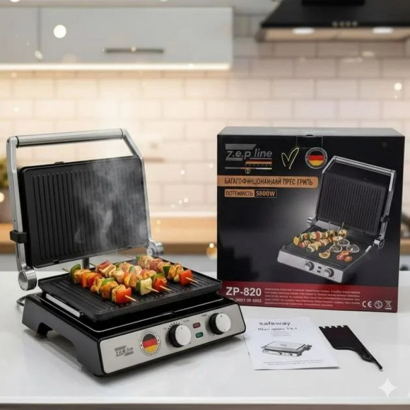Електрогриль контактний Zepline ZP-820 3500 Вт Знімні антипригарні пластини — якісний товар за доступною ціною в магазині shtyrman.com. Швидка доставка по всій Україні. Гарантія якості та повернення протягом 14 днів.