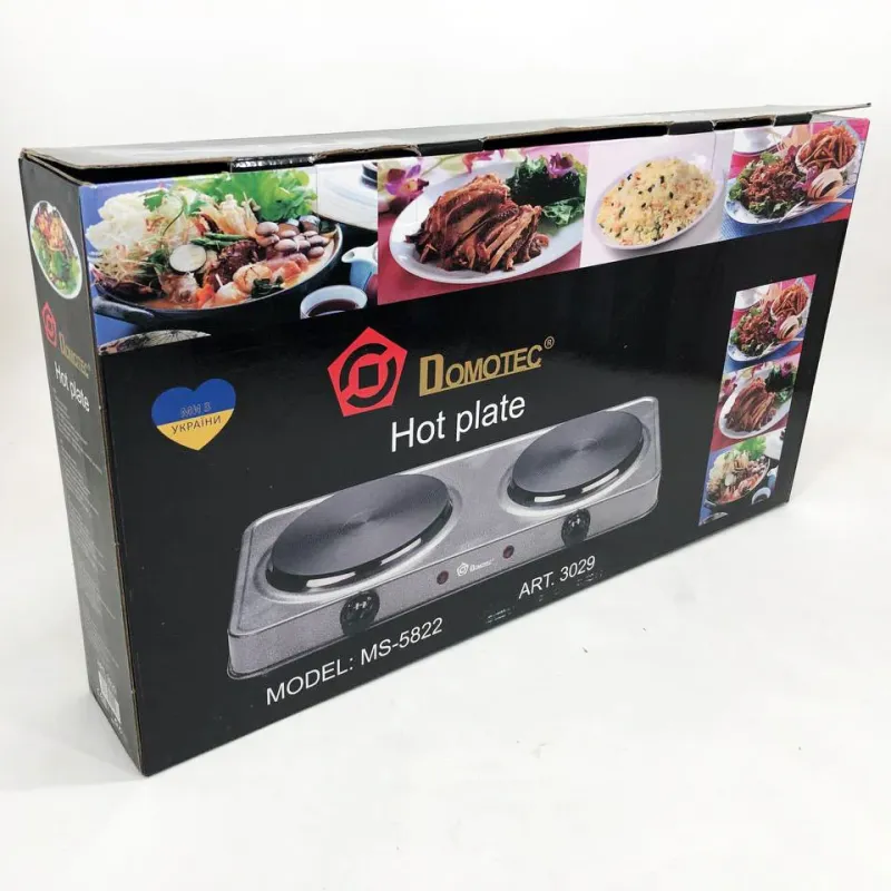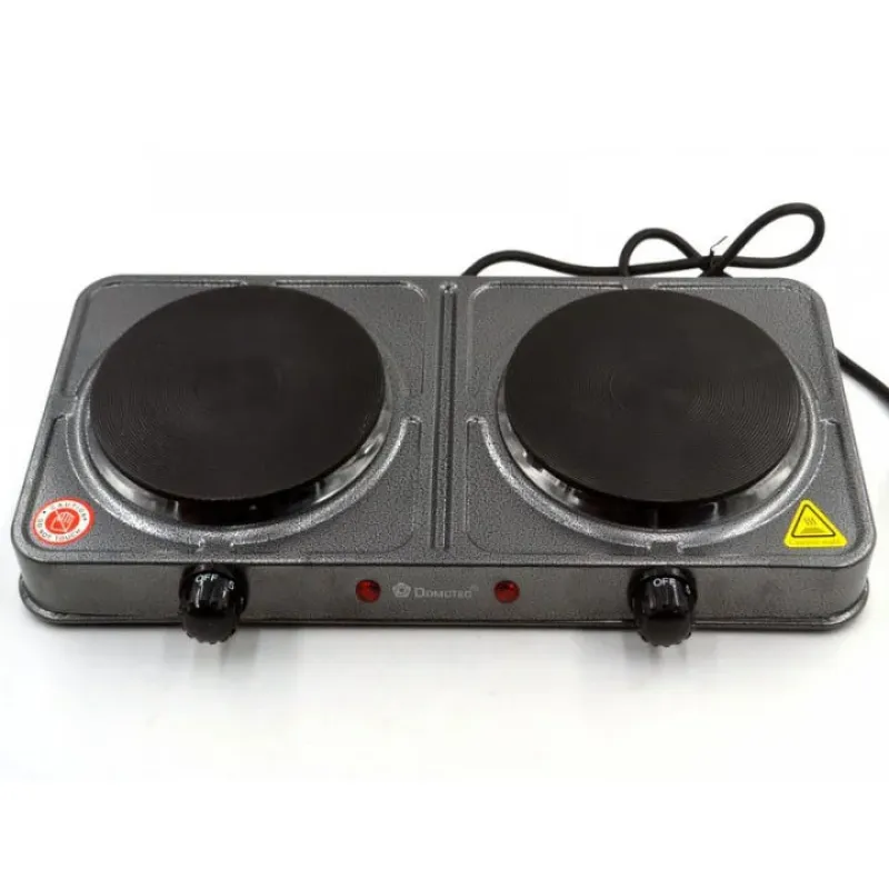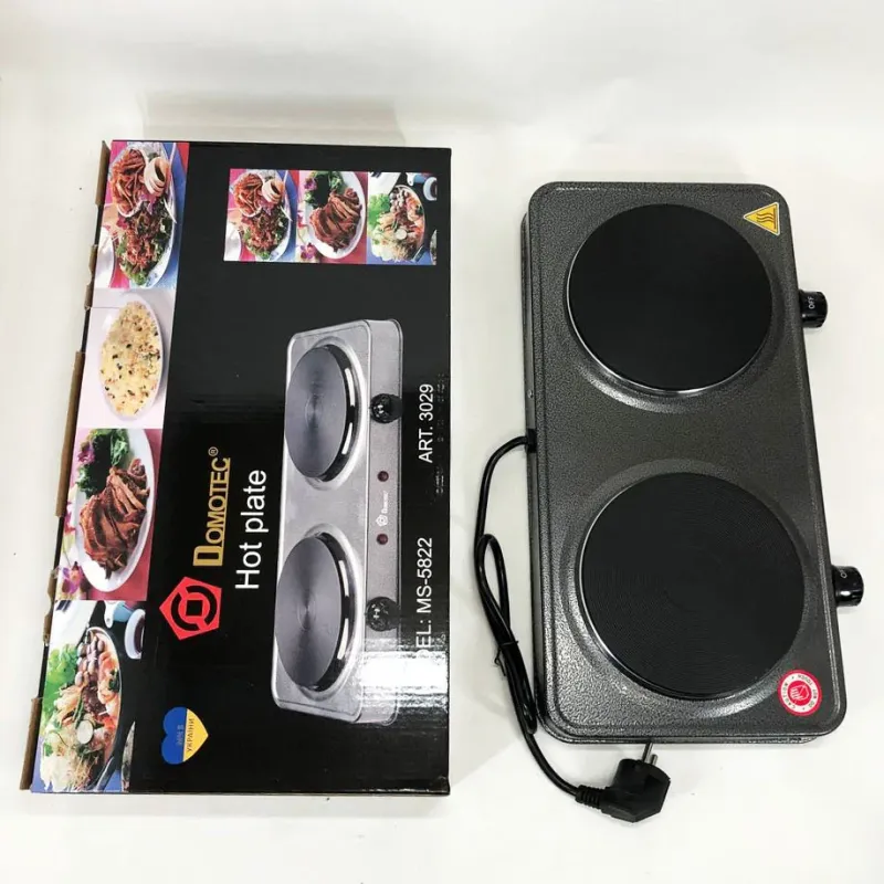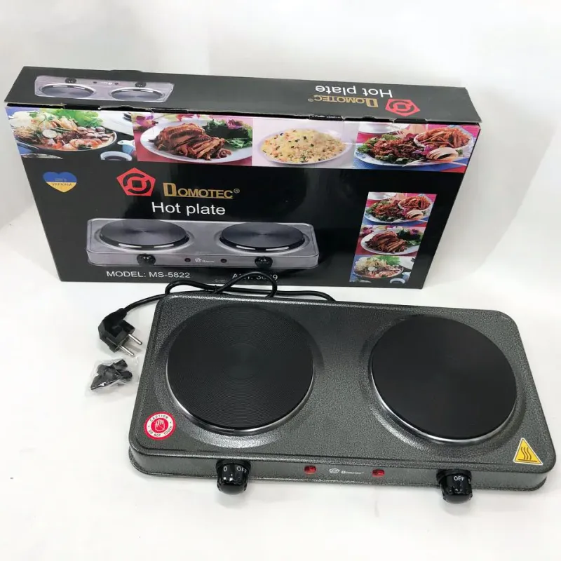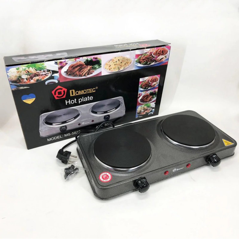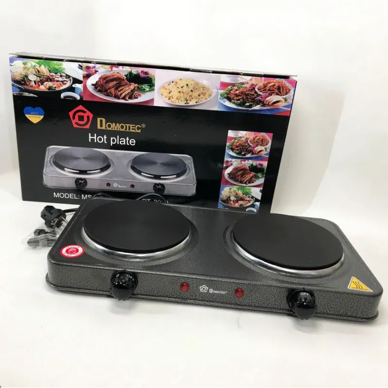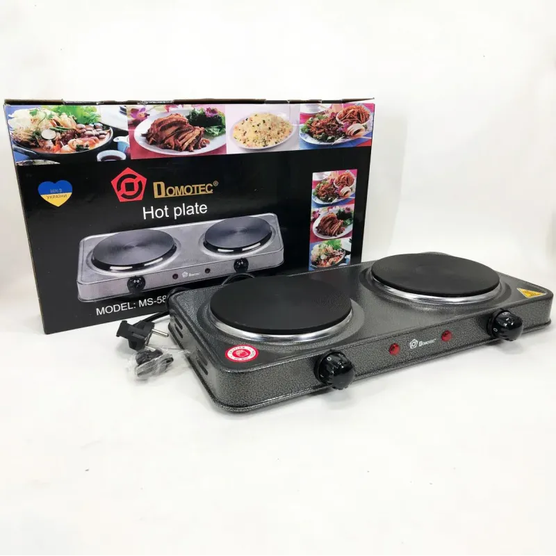 Электроплита Domotec MS-5822 2 диска 2000 Вт, плита электрическая переносная двухконфорочная настольная