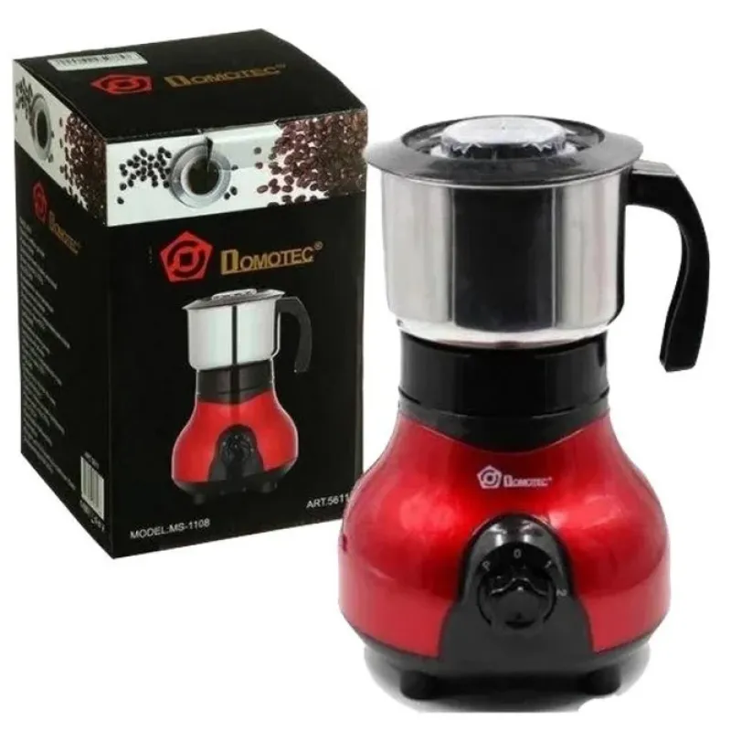 Кофемолка Domotec MS-1108 - обязательное устройство в каждом доме, кто не может обойтись без чашки кофе. Она в считанные секунды измельчит кофейные зерна и даст возможность насладиться ароматным утренним кофе. С помощью данной кофемолки вы сможете измельчить твердые овощи и фрукты, орехи, специи и травы- это выгодно отличает модель от других кофемолок.