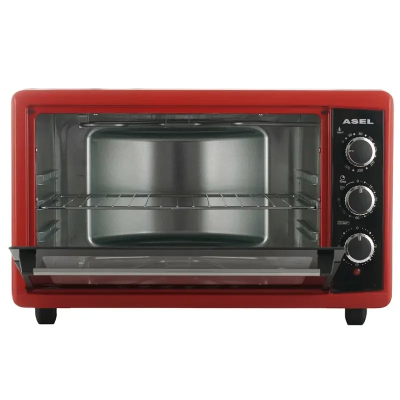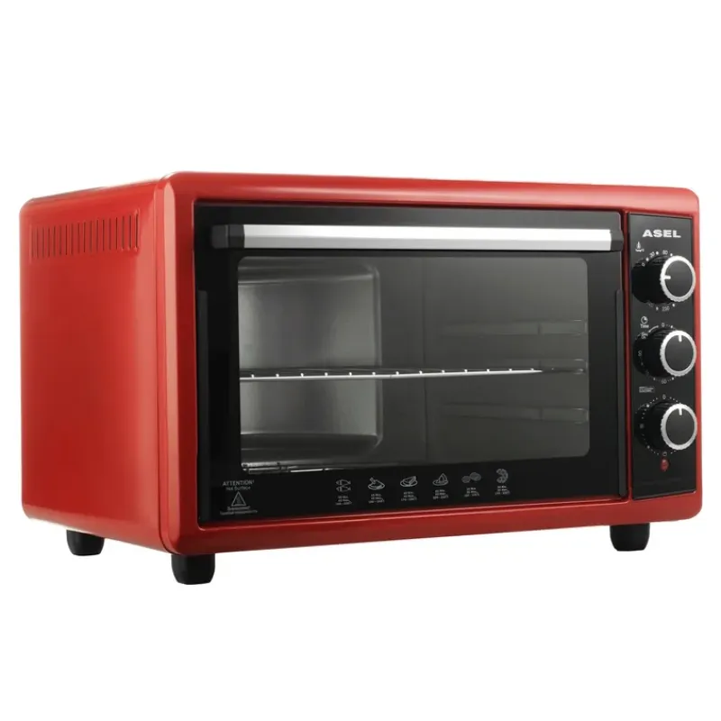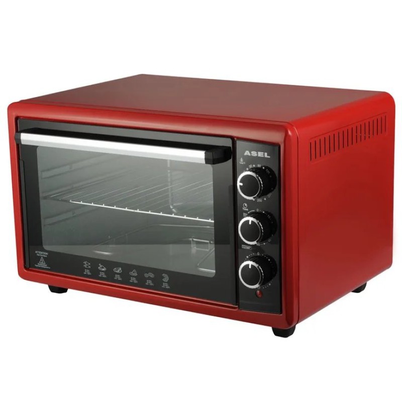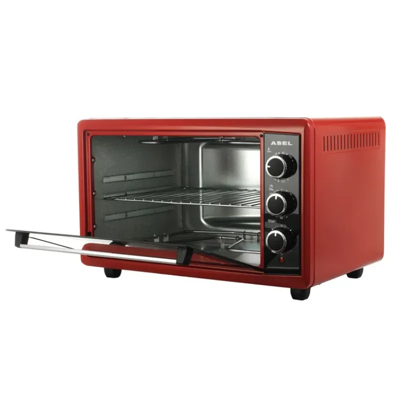 Электро духовка asel оснащена функциями разогрева пищи и напитков. Мощность работы духовки составляет 1,5 кВт. Корпус изготовлен из нержавеющей стали и сверху укрыт двухслойным биопокрытием из жароустойчивого материала. Внутри духовка легко чиститься. Кроме этого, духовка оснащена современной системой теплоизоляции, имеет два встроенных нагревательных элемента – верхний и нижний. Турецкая духовка вместительна и функциональна. Объем Духовка электрическая asel достаточно большой и составляет 50 л.