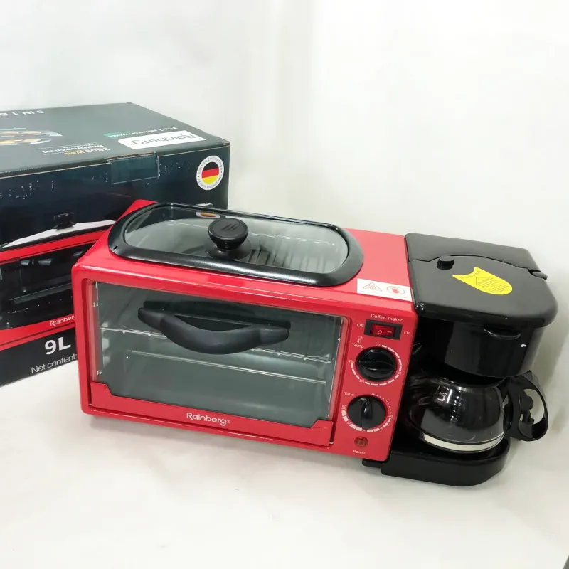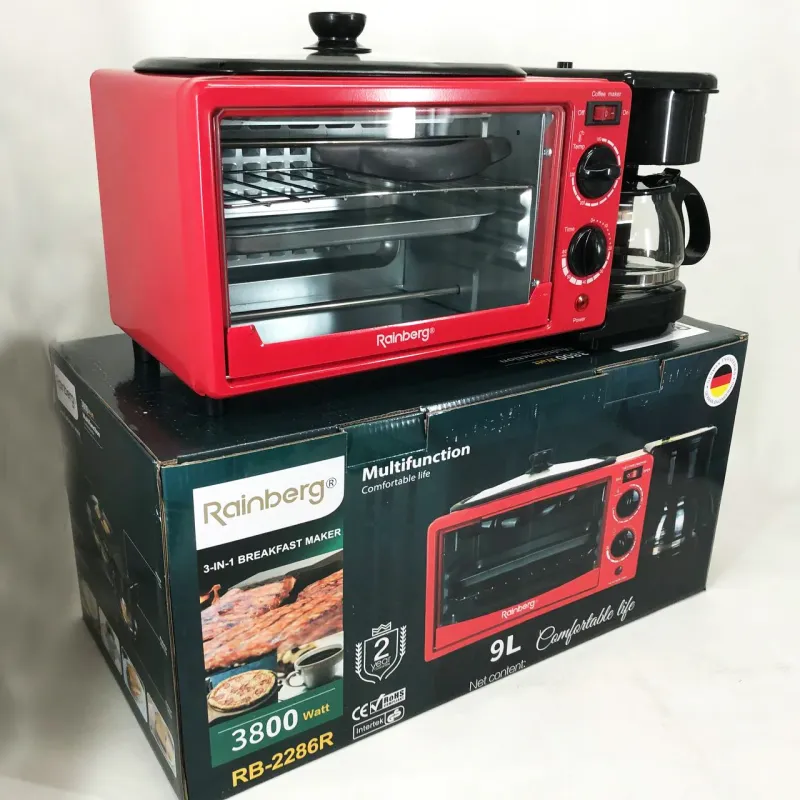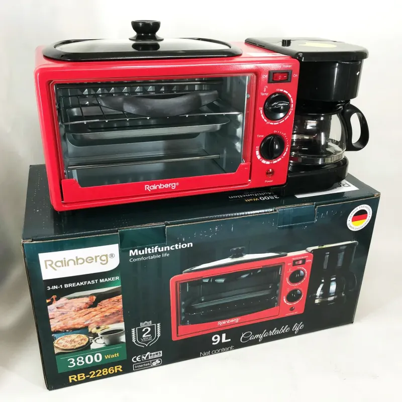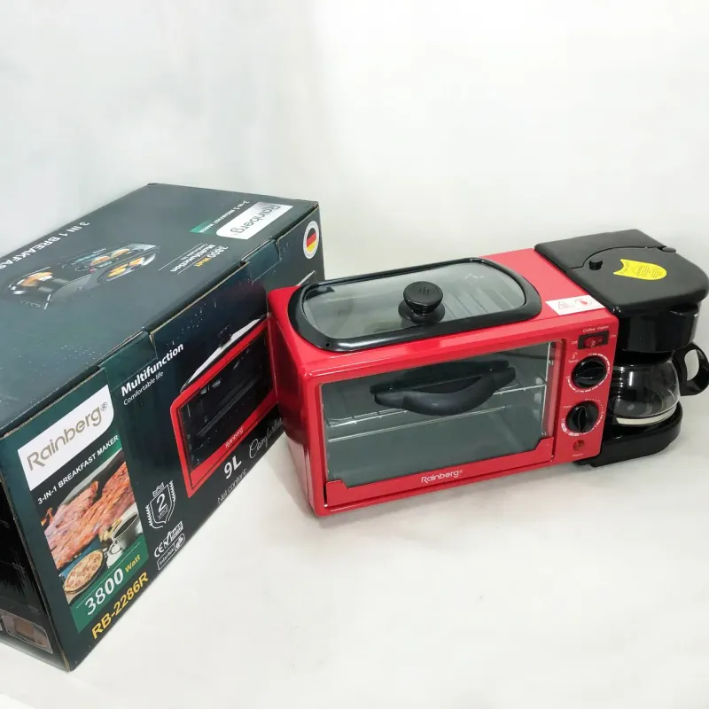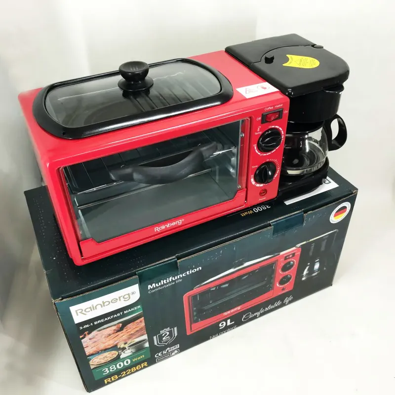 Электрическая печь настольная для кухни для выпечки с кофеваркой и сковородой гриль с крышкой 3в1 (машина для завтрака)Rainberg RB 2286B 3800 Вт- это удивительный маленький многофункциональный кухонный прибор, который может даже использовать приготовление на сковороде!