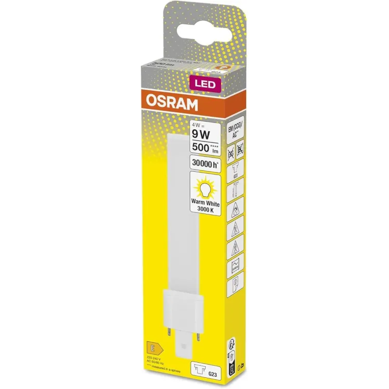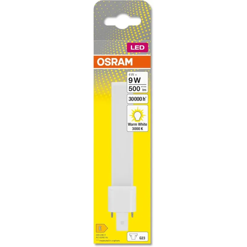 Теги: LED лампа OSRAM, лампа G23, енергоефективна лампа, OSRAM DULUX S9, LED 4W, тепле біле світло, заміна 9W
