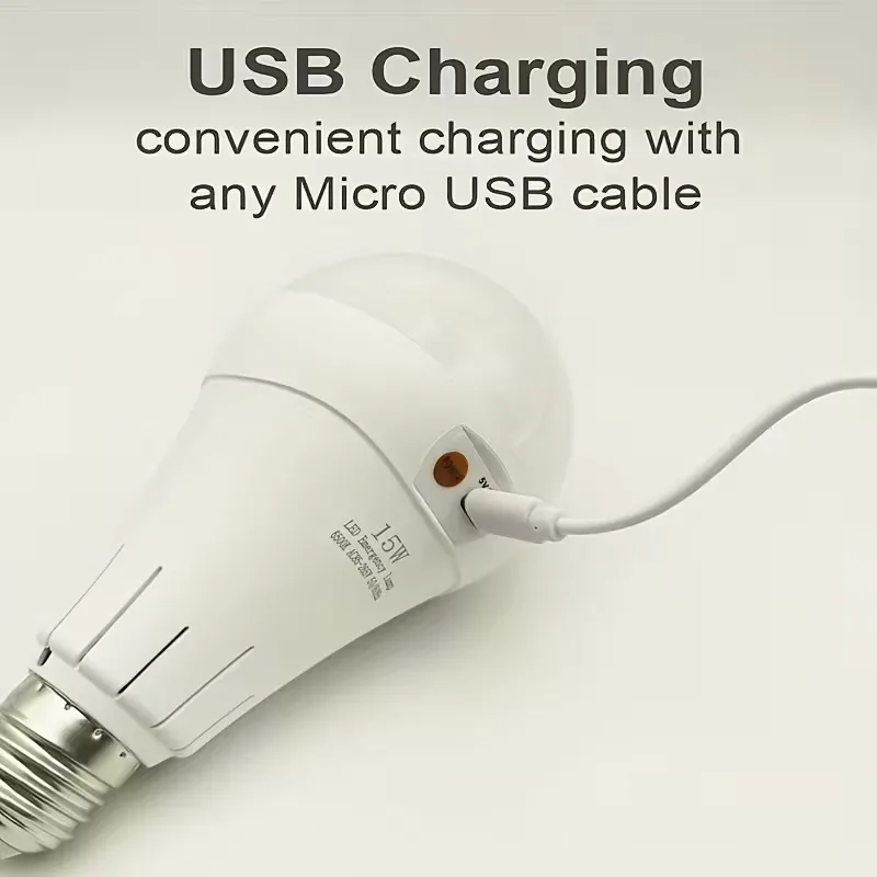 Просто вкрутіть лампу в будь-який стандартний патрон Е27 — і отримаєте повноцінне освітлення без електрики. Вбудований акумулятор 18650 забезпечує тривалу автономну роботу, а енергоощадна LED-технологія дає яскраве світло при мінімальному споживанні енергії. Зарядили через USB — і лампа готова світити годинами.