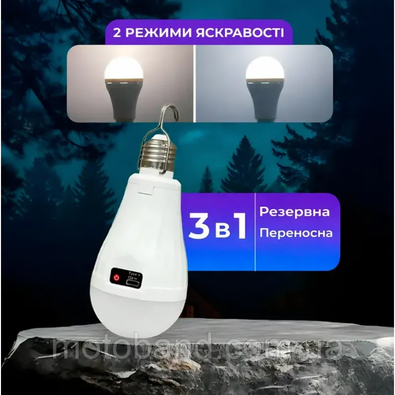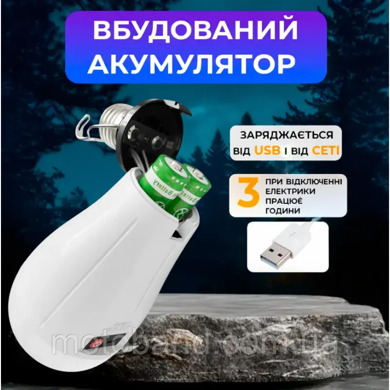 Теги: LED лампа з акумулятором, енергозберігаюча лампочка E27, світлодіодна лампа 20W, автономна лампа для дому, лампа з зарядкою від мережі, аварійне освітлення, підвісна LED лампа