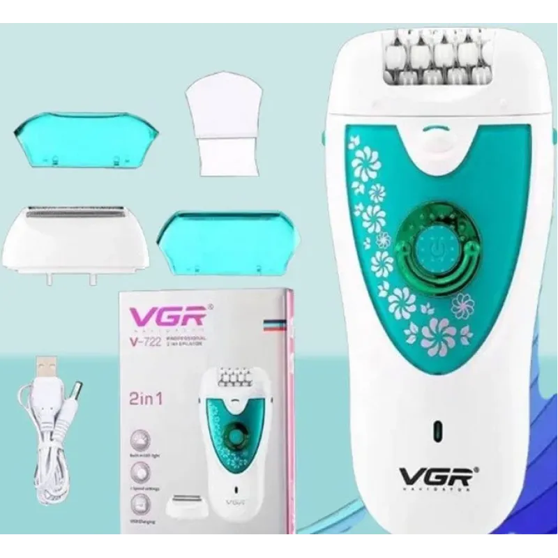 Эпилятор VGR V-722 GREEN (аккумуляторный, 2 скорости, 32 пинцета, с насадками)