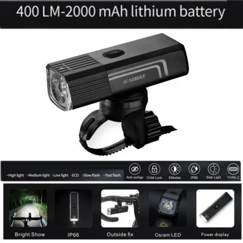 LEADBIKE LD88-OSRAM 400LM — это мощная и надежная велофара, которая обеспечивает отличное освещение и безопасность на дороге. С её прочным и влагозащищенным корпусом, удобной зарядкой через Type-C, и уникальной функцией блокировки от детей, эта фара подходит для широкого круга пользователей, включая семьи с детьми.