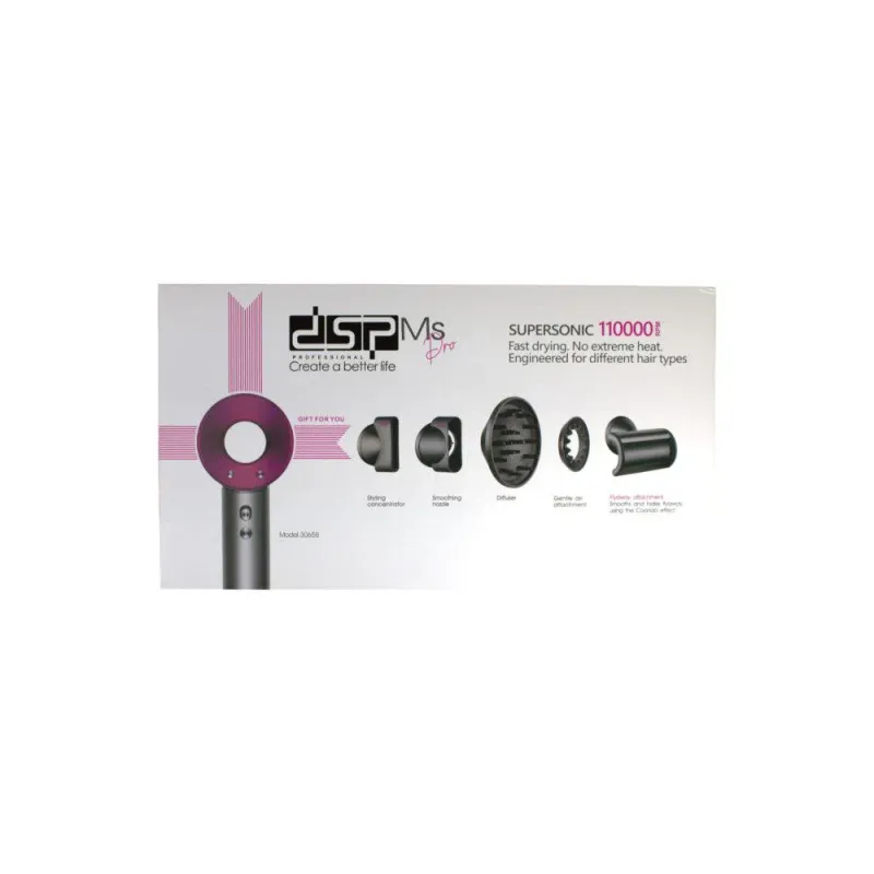 Фен для волос профессиональный 5в1 DSP30658 — швидке та дбайливе сушіння волосся. Потужний мотор скорочує час сушіння вдвічі порівняно зі звичайними феном. Іонізація нейтралізує статичну електрику і робить волосся гладким та блискучим. Кілька режимів температури і потоку повітря підходять для будь-якого типу волосся. Концентратор у комплекті для точного укладання.