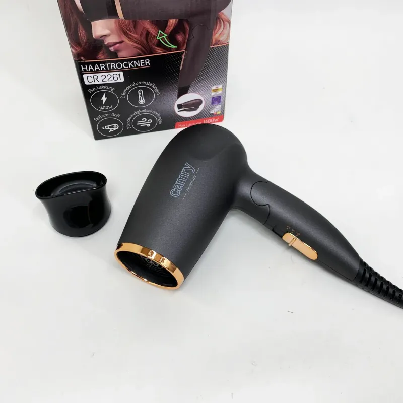 Фен Camry CR-2261 — це оптимальне рішення для ефективного догляду за волоссям, яке поєднує потужність і зручність у користуванні. Завдяки своєму дизайну та технічним параметрам цей пристрій допоможе створити професійні зачіски, швидко висушити волосся і надати локонам потрібну форму без зайвих зусиль.