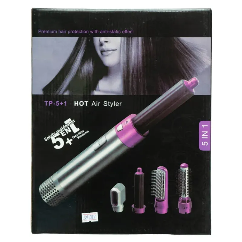 Стайлер 5в1 Hot Air Styler – це справжнє салонне укладання у Вас вдома з турботою про волосся! З його допомогою можна створити пишні кучері, акуратно підщепити кінчики волосся або зробити ефектні хвилі. Фен гребінець для укладання волосся стане альтернативою звичному поєднанню звичайного фена та круглої щітки, складе конкуренцію щипцям для завивки, прасування для волосся та термобігуді. Підійде для формування графічних локонів та укладання легкими хвилями, з його допомогою можна швидко просушити густе волосся або красиво укласти чубок. Також фен-щітка незамінна для роботи з кучерявим волоссям – за короткий час прилад структурує завитки і надає безформному волоссю акуратний і стильний вигляд. Феном-щіткою можна надати об’єм негустому хвилястому або прямому волоссю. Прилад приємно вражає своєю довговічністю та високою ефективністю. Комплектація: -Електрична щітка для волосся 5 в 1 Hot AIR Styler, Гребінець – для надання об’єму від коріння; Фен; Кругла щітка-брашинг для великих локонів; Насадка для завивки великих локонів; Насадка для завивки малих локонів; Інструкція; Коробка