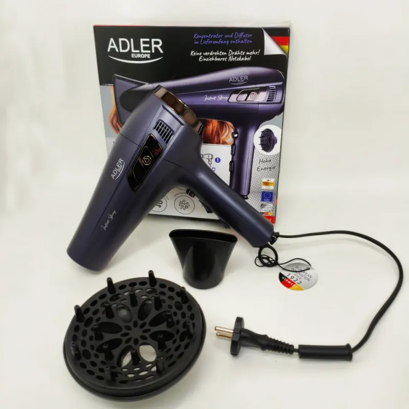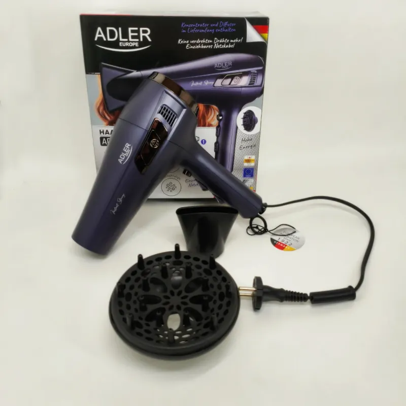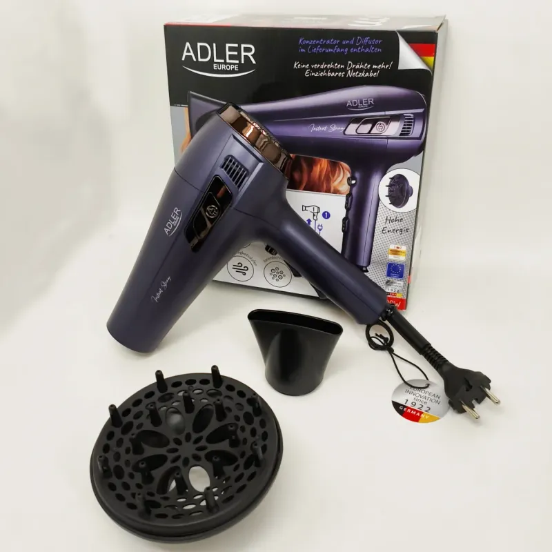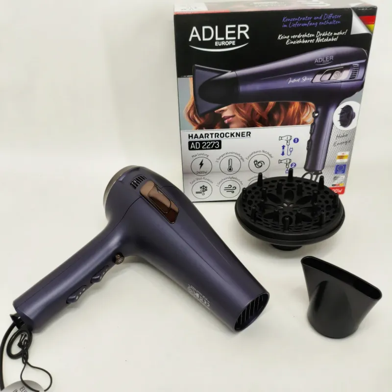 Познакомьтесь с феном Adler AD 2273, который сочетает в себе высокую мощность, передовые технологии и комфорт использования. Благодаря втягивающемуся шнуру, технологии ионизации и функции холодного воздуха этот фен удовлетворит все ваши потребности в уходе за волосами. Дополнительные аксессуары, такие как концентратор воздуха и диффузор, позволяют создавать различные стили.