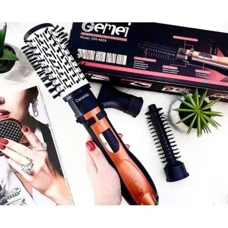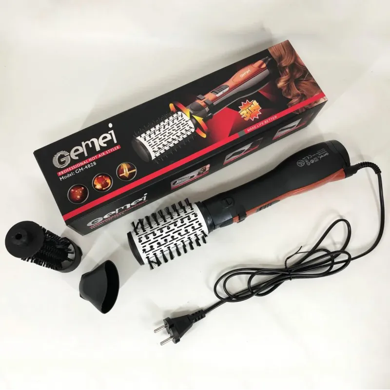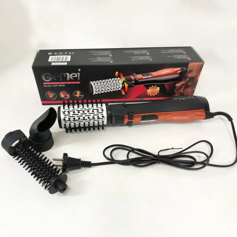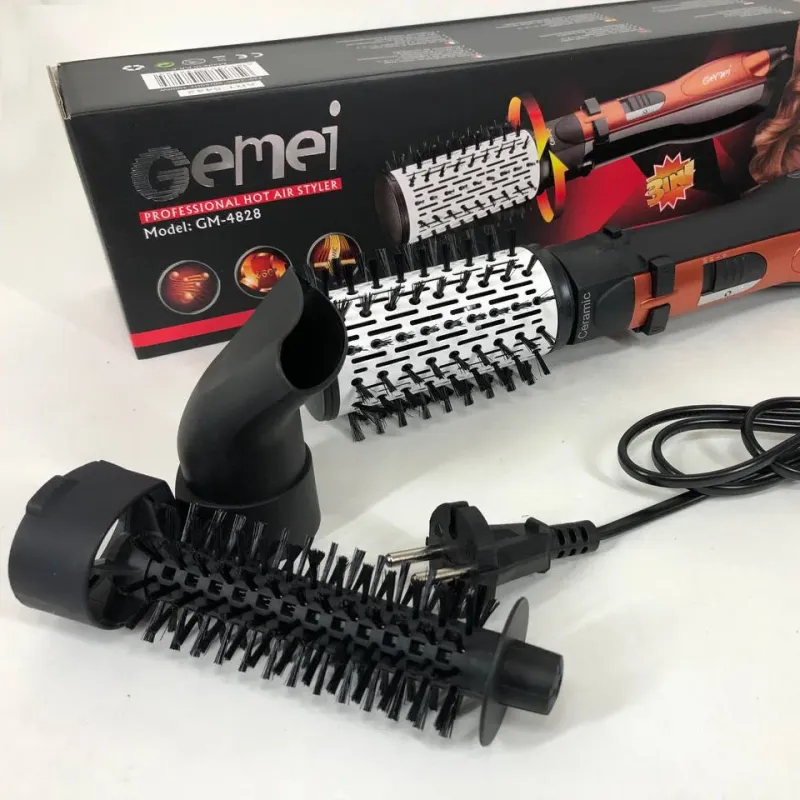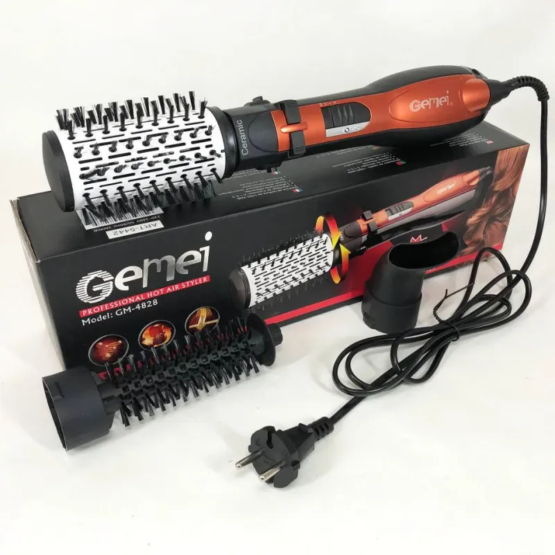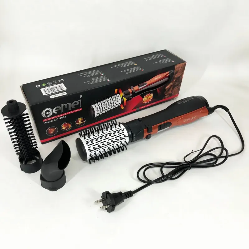 Фен Щетка Gemei Gm-4828 Браш Стайлер Вращающаяся Расческа Для Брашинга, Фен щетка 3 в 1, Фен браш Gemei