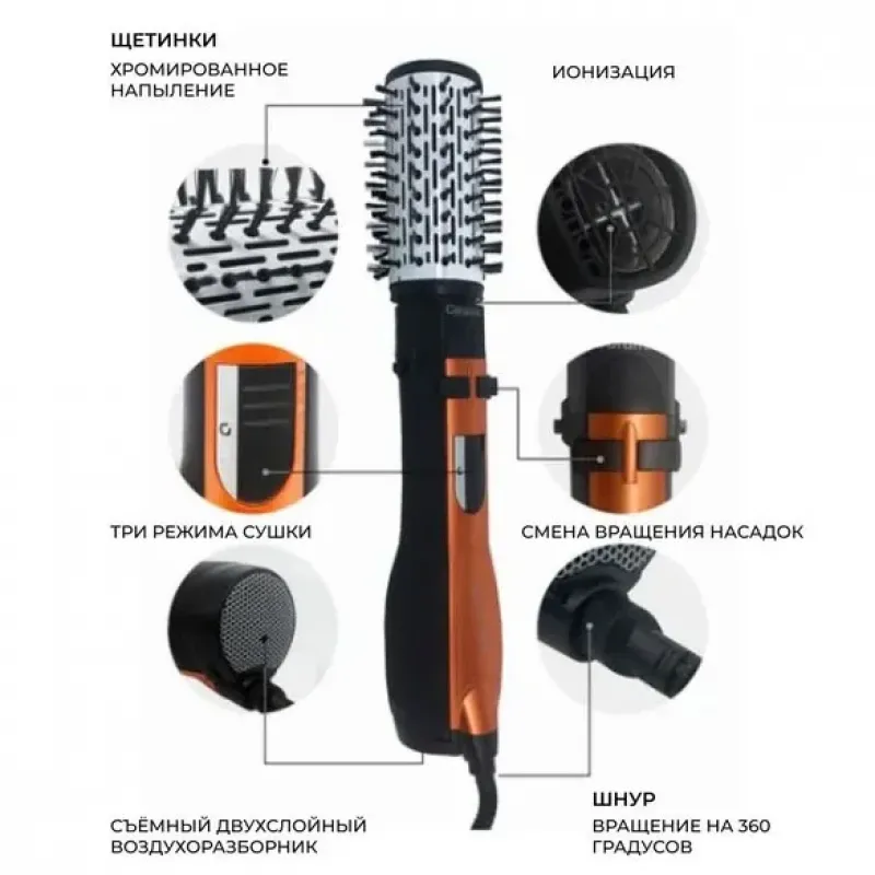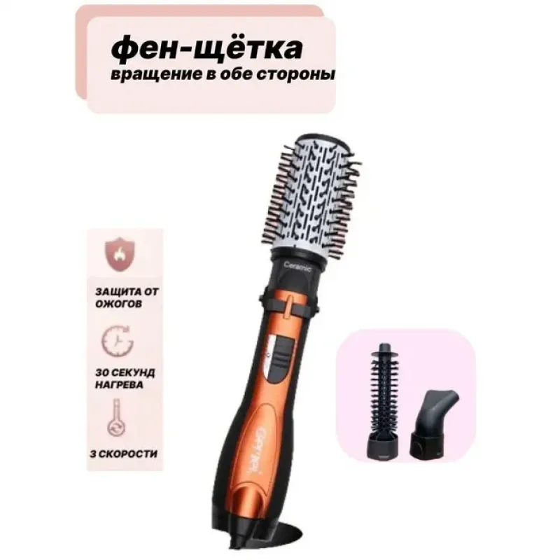 Фен щетка 3 в 1 для брашингу, що вращається для легкого укладання волосся. За допомогою цього пристрою ви зможете легко і швидко створити різноманітні стилі волосся.