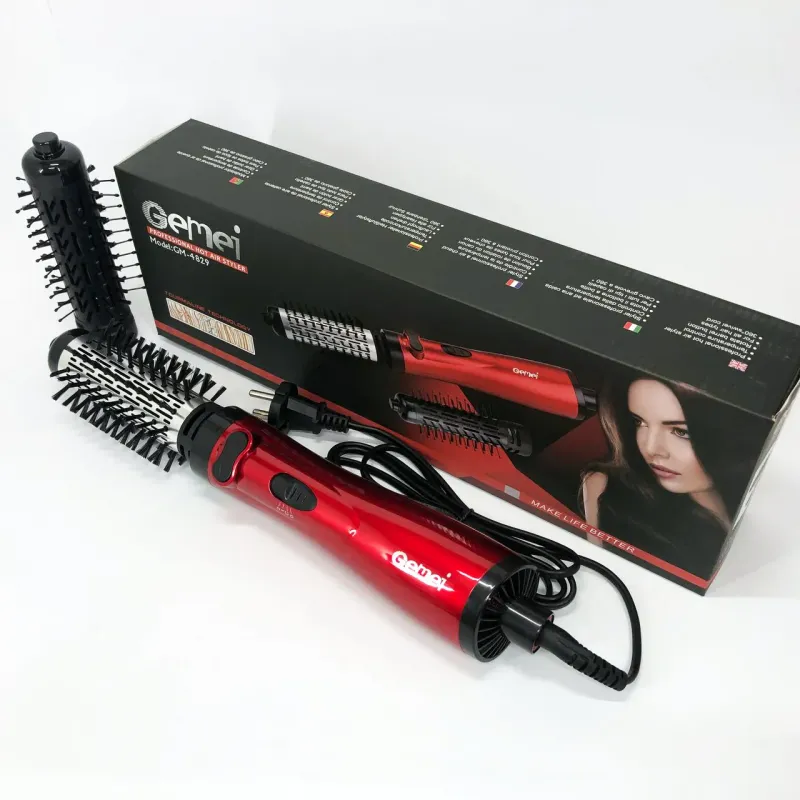 Фен щетка для сушки волос вращающейся Gemei GM-4829, Стайлер для укладки, браш воздушный, плойка расческа