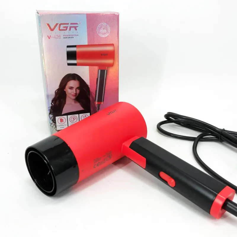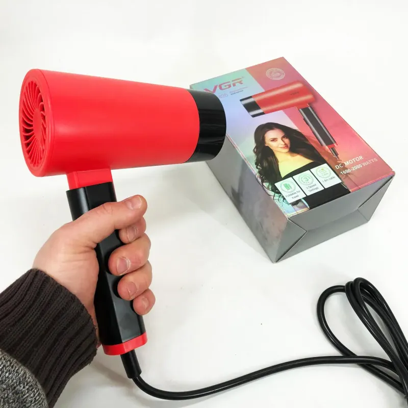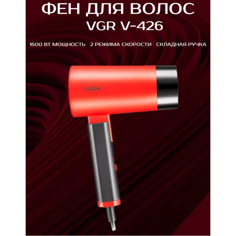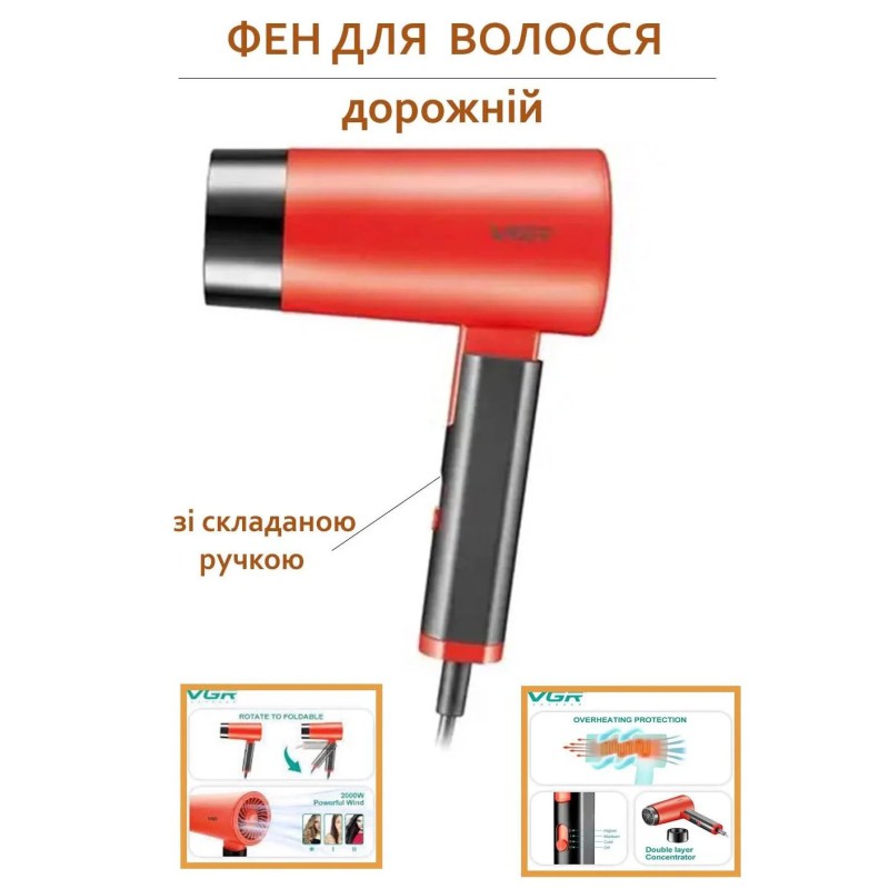 Фен со складной ручкой для волос VGR V-426 2000Вт, Стильный фен для укладки волос. Цвет: красный