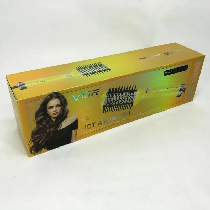 Фен-щетка для волос VGR V-497– устройство, которое может заменить одновременно плойку, утюг и фен. Он может использоваться для сушки волос и моделирования причесок, выравнивания прядей и создания эффектных укладок. Мультистайлер имеет поворотную насадку с керамическим покрытием, благодаря чему исключен перегрев и повреждение локонов.