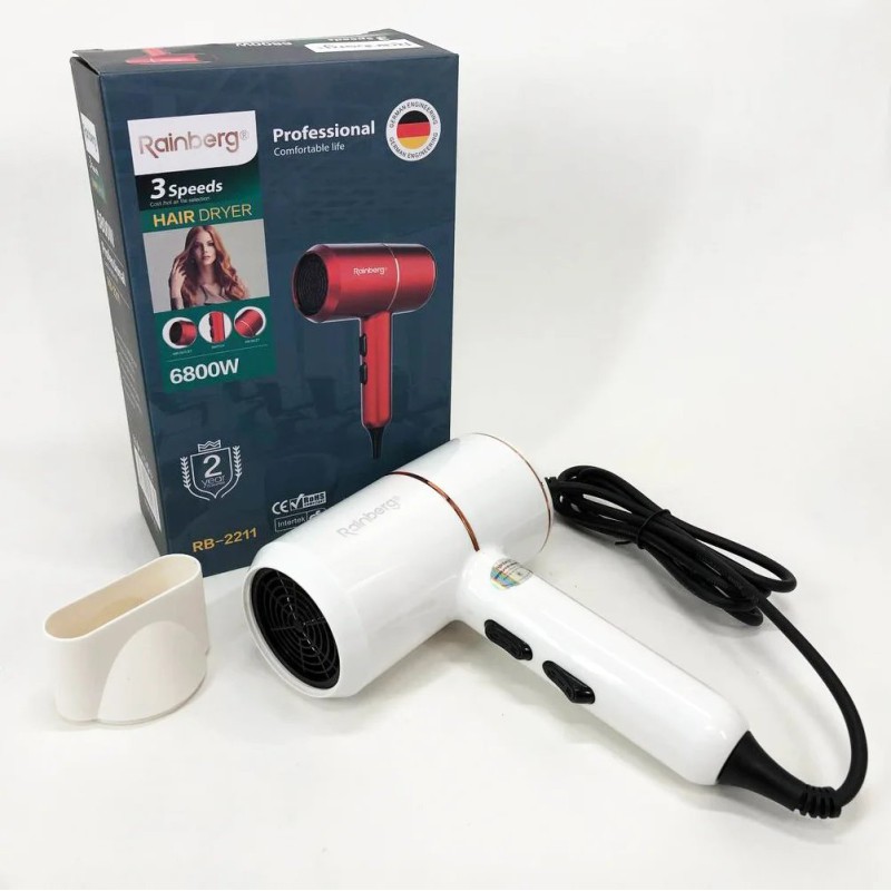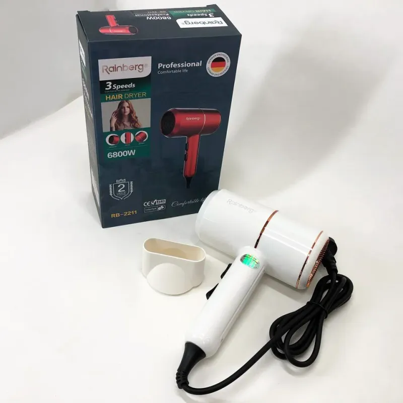 - Фен Rainberg отличается красивым дизайном и доступной ценой с большим набором функций