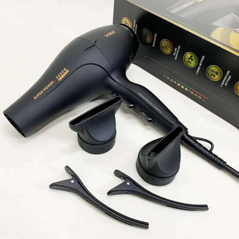 Фен поддерживает 3 уровня скорости обдува и 3 режима температуры, что позволяет подобрать оптимальные параметры для любого типа волос — от тонких до густых. В комплект входят 2 насадки: концентратор для точной укладки и насадка для быстрой сушки. Благодаря сочетанию мощности, функциональности и удобства, VGR V-406 BLACKстанет отличным выбором как для мастеров, так и для домашнего использования.