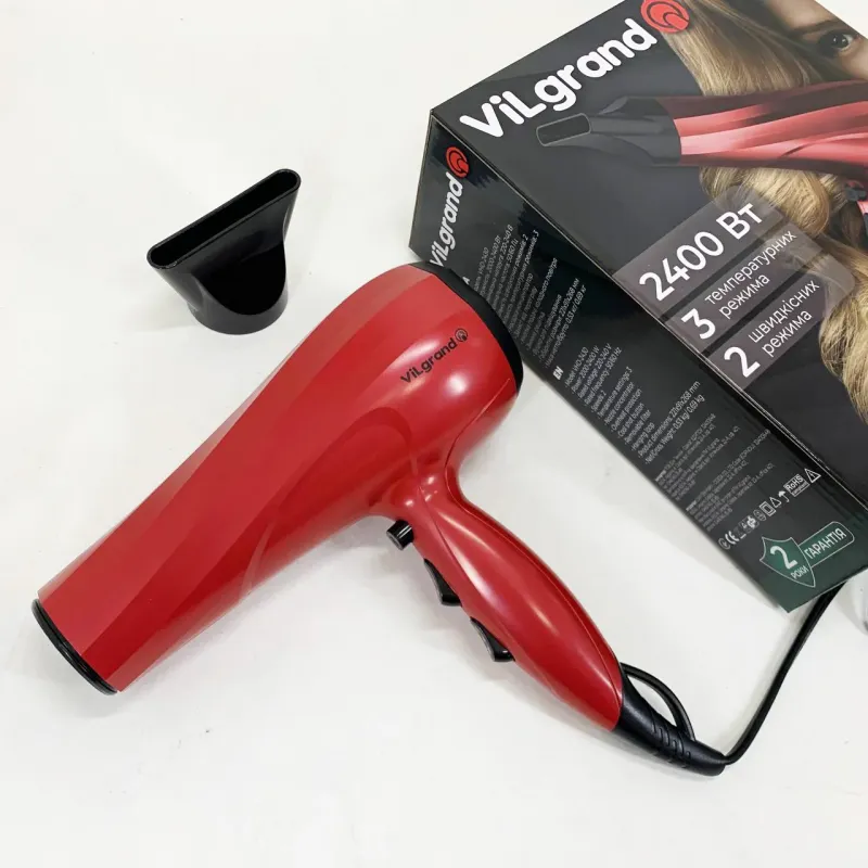 Подарите своим волосам идеальную укладку и блеск с феном для волос VILGRAND VHD 2430 red, оснащенным холодным обдувом и мощностью 2400! Это многофункциональное устройство станет вашим незаменимым спутником для создания причесок профессионального уровня.