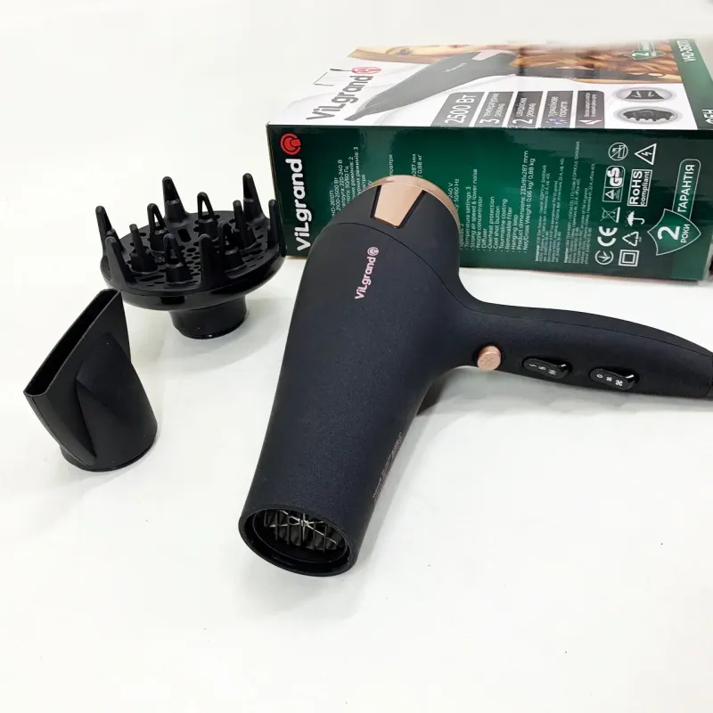 Наш фен оборудован двумя скоростными режимами и тремя температурными режимами. Это позволяет вам выбирать наилучшие параметры сушки в зависимости от вашего типа волос и желаемого стиля. Также, благодаря насадке-диффузору и насадке-концентратору, вы сможете создать как объемные, так и гладкие укладки.