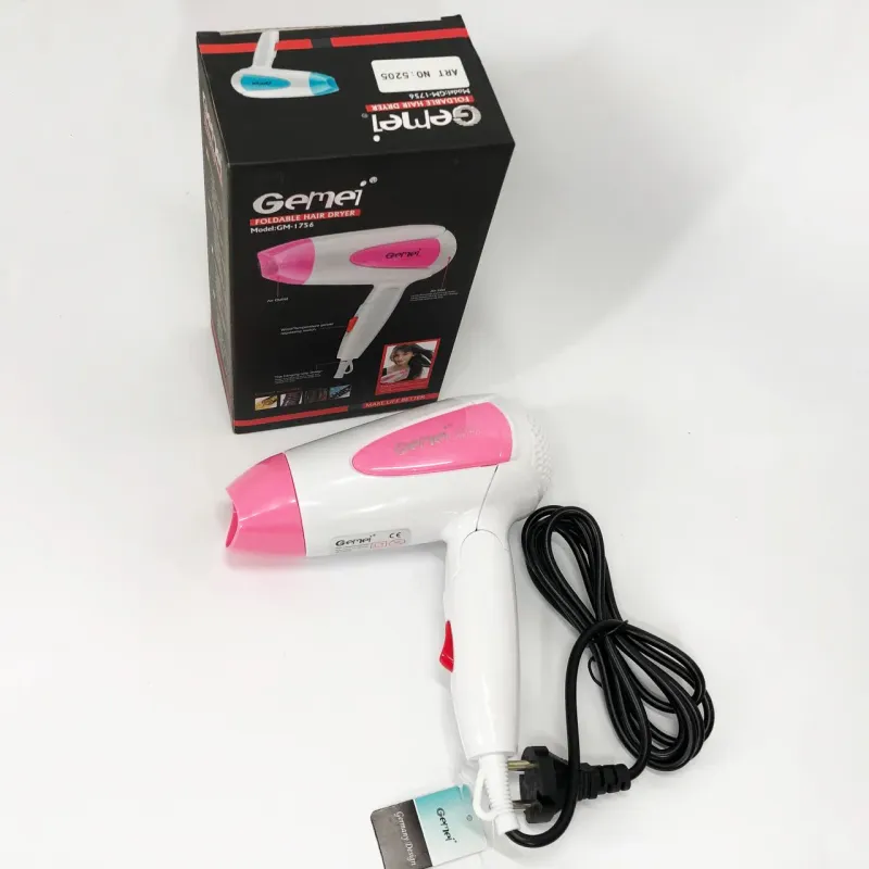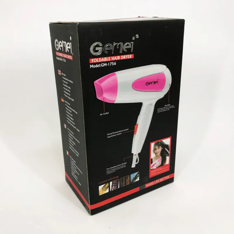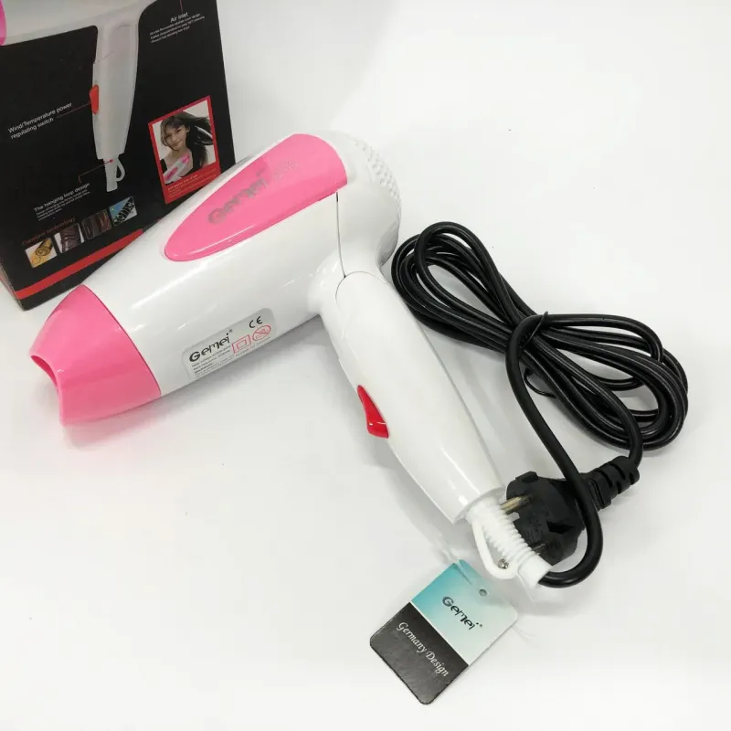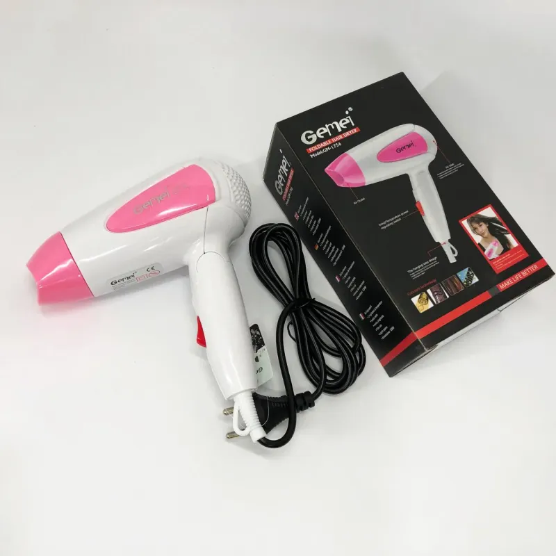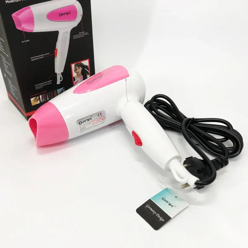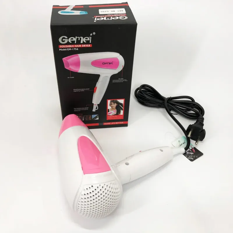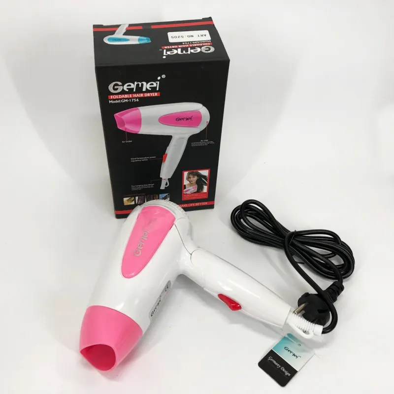 Фен для волос складной дорожный Gemei GM-1756 1200 Вт, Домашний фен для укладки. Цвет: розовый