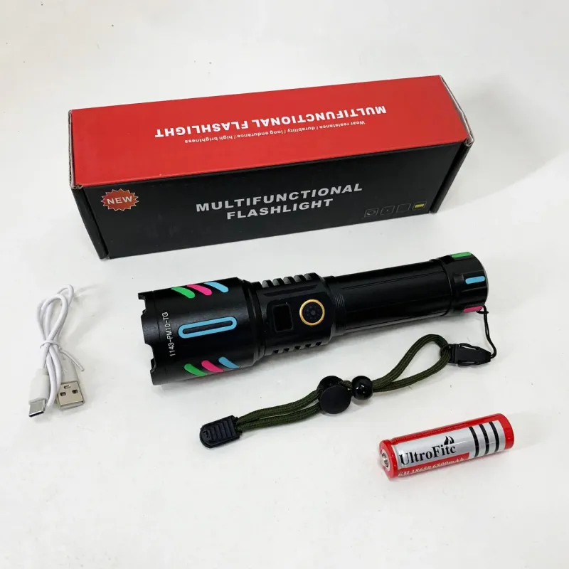 Мощный ручной фонарь с флуоресцентным покрытием и оптическим зумом. Работает от аккумулятора 1×18650 и имеет зарядку через USB. Имеет пять режимов работы: от яркого света до стробоскопа и SOS. Индикация заряда и пыле- и влагозащищенный корпус для надежной работы в любых условиях.