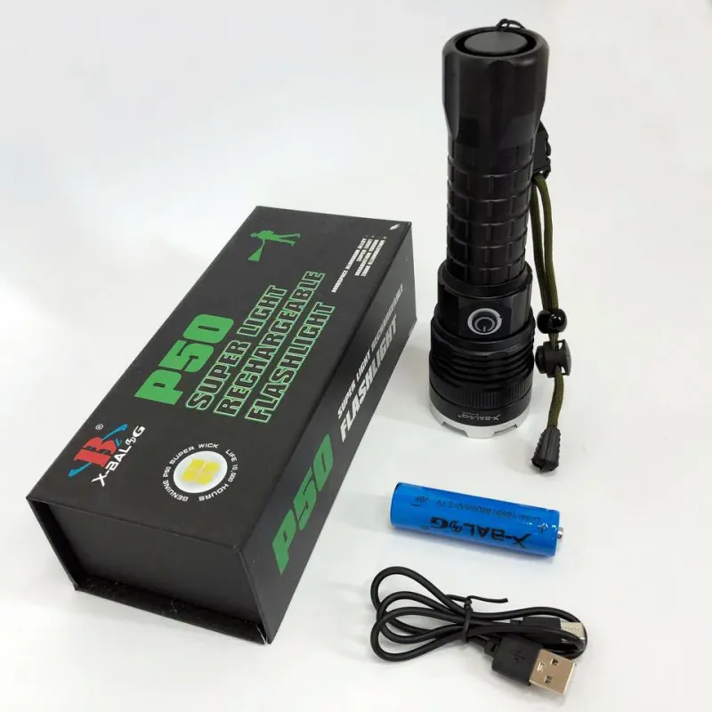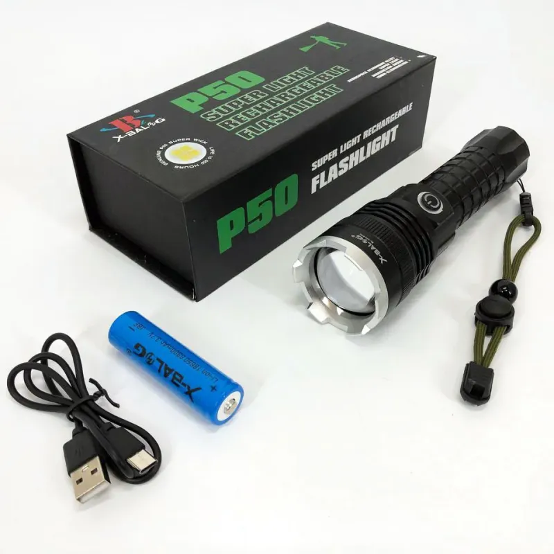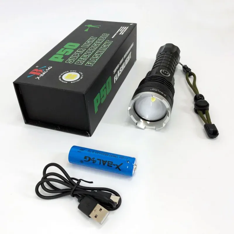 Фонарь аккумуляторный X-Balog BL-A72-P50, ручной фонарик, водонепроницаемый фонарь, мощный аккумуляторный