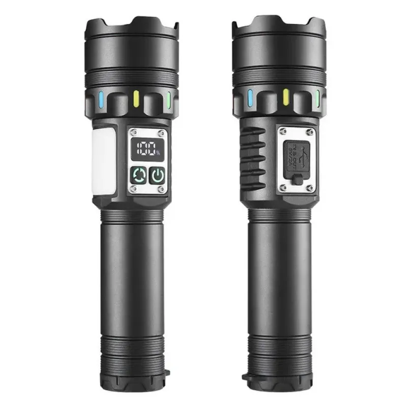 Багатофункціональний ручний ліхтар з TG та COB світлодіодами та дев& Має світловідбивне флуоресцентне покриття, яке помітне у темряві. Оснащений функцією Power Bank, магнітом для кріплення, оптичним зумом та індикацією заряду. Заряджається через USB Type-C.