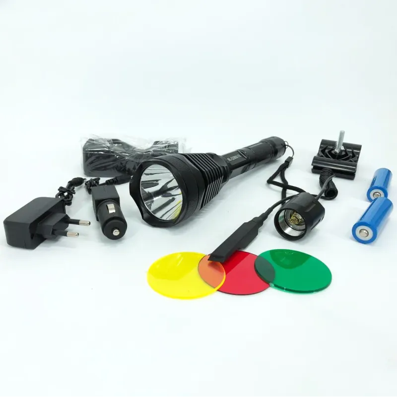 Фонарь Police BL - Q2800 T6 идеально подходит для охоты потому как сделан из прочного металлического анодированного корпуса, пыле - и влагозащищенный. Рифленая поверхность корпуса позволяет уверенно держать фонарь мокрыми руками в самых экстримальных ситуациях. Выступы на корпусе фонаря Police BL - Q2800 T6 защищают от повреждения стекло. Фонарь Police BL - Q2800 T6 оборудован уплотнительными резиновыми кольцами на резьбовых соединениях для защиты от проникновения влаги и пыли. Фонарь комплектуется выносной кнопкой, которая имеет три кнопки и работает в 2 - х режимах. Две кнопки (нажал светит, отпустил не светит) и одна кнопка (нажал и отпустил светит, нажал и отпустил не светит).