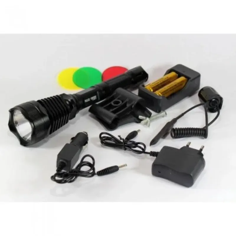 Фонарь тактический Police Q2800-T6 18650 х 2, заряжается от сети 220В и авто ЗУ 12В, выносная кнопка