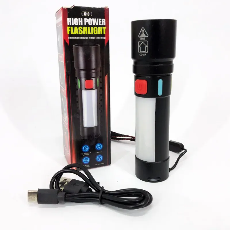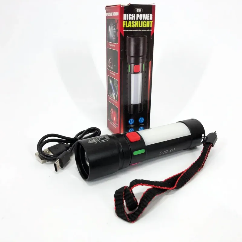 Фонарь 611-TG+COB — это мощный и универсальный фонарь, который сочетает яркий белый свет и красный для сигнальных целей. Его функция зума позволяет регулировать ширину и дальность пучка света, а аккумулятор Li-Ion обеспечивает до 6 часов работы. Черный корпус выполнен из качественных материалов, что делает фонарь прочным и долговечным. Зарядка через USB-C порт удобна и быстра.